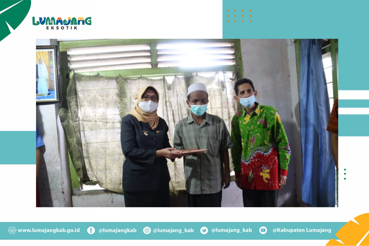 Wakil Bupati Lumajang, Indah Amperawati menyerahkan bantuan bedah rumah kepada masyarakat di Desa Karanglo dan Sukorejo, Kecamatan Kunir, Selasa (16/02/2021). Bantuan senilai 10 juta rupiah tersebut merupakan bantuan Program Lumajang Peduli dari Badan Amil Zakat Nasional (Baznas) Lumajang.