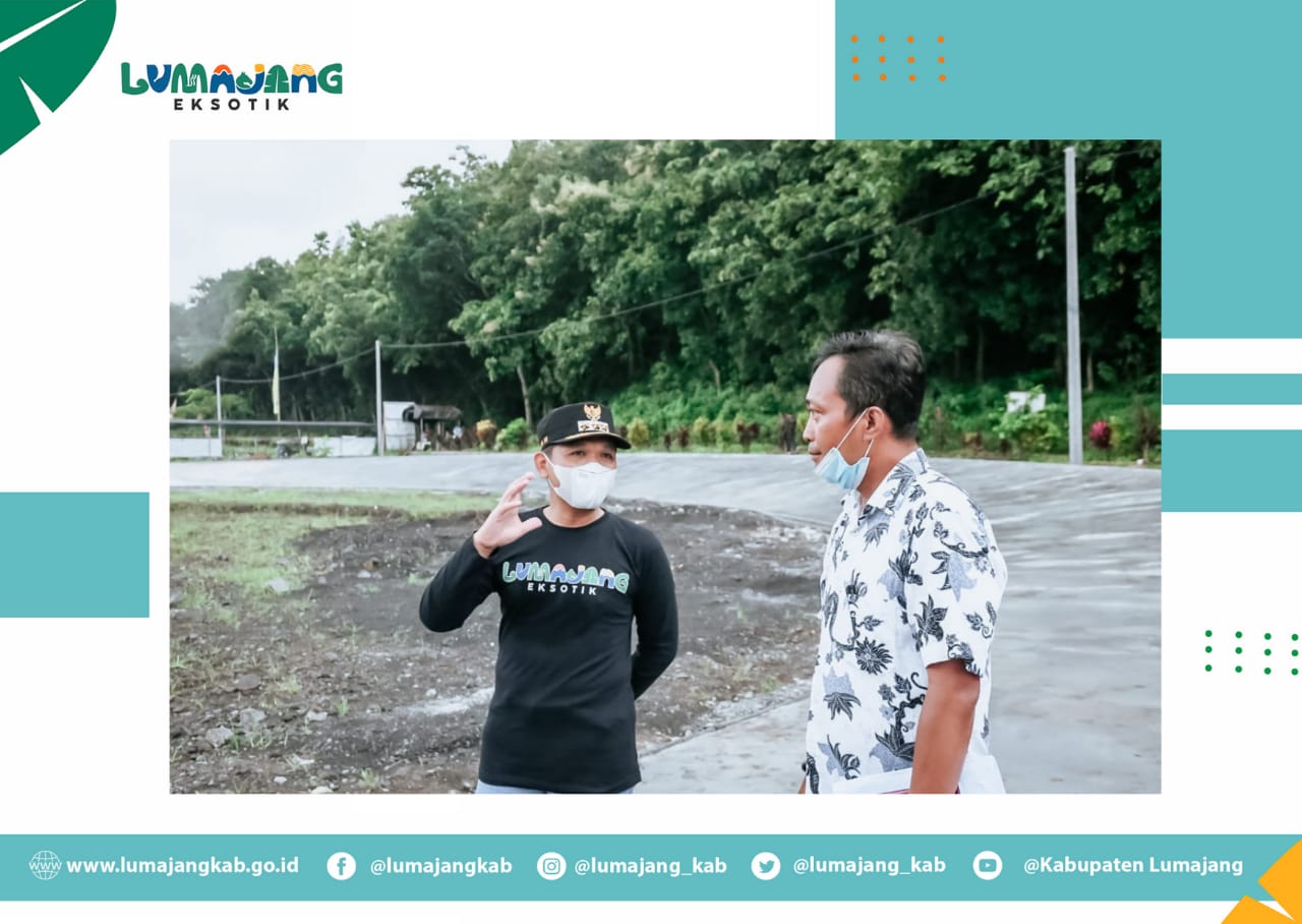 Bupati Lumajang, Thoriqul Haq meninjau langsung pelaksanaan pembangunan Sirkuit Sepatu Roda yang berlokasi di area Wisata Tambuh Raya Idaman, Desa Condro, Kecamatan Pasirian, Jum'at (19/2/2021).