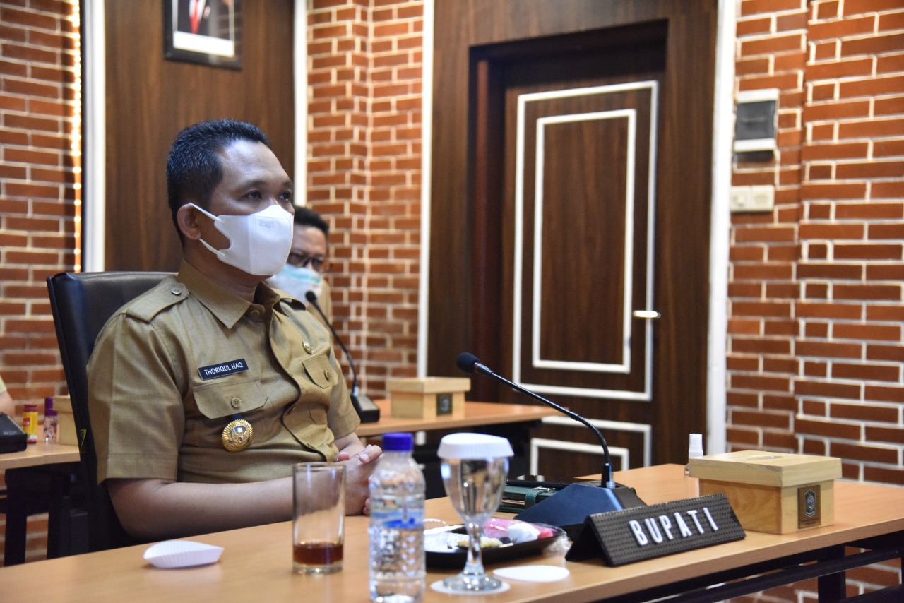 Bupati Lumajang Thoriqul Haq mengikuti kegiatan Opening Ceremony Festival Ekonomi Syariah secara virtual di Ruang Mahameru, Kantor Bupati Lumajang, Senin (27/9).