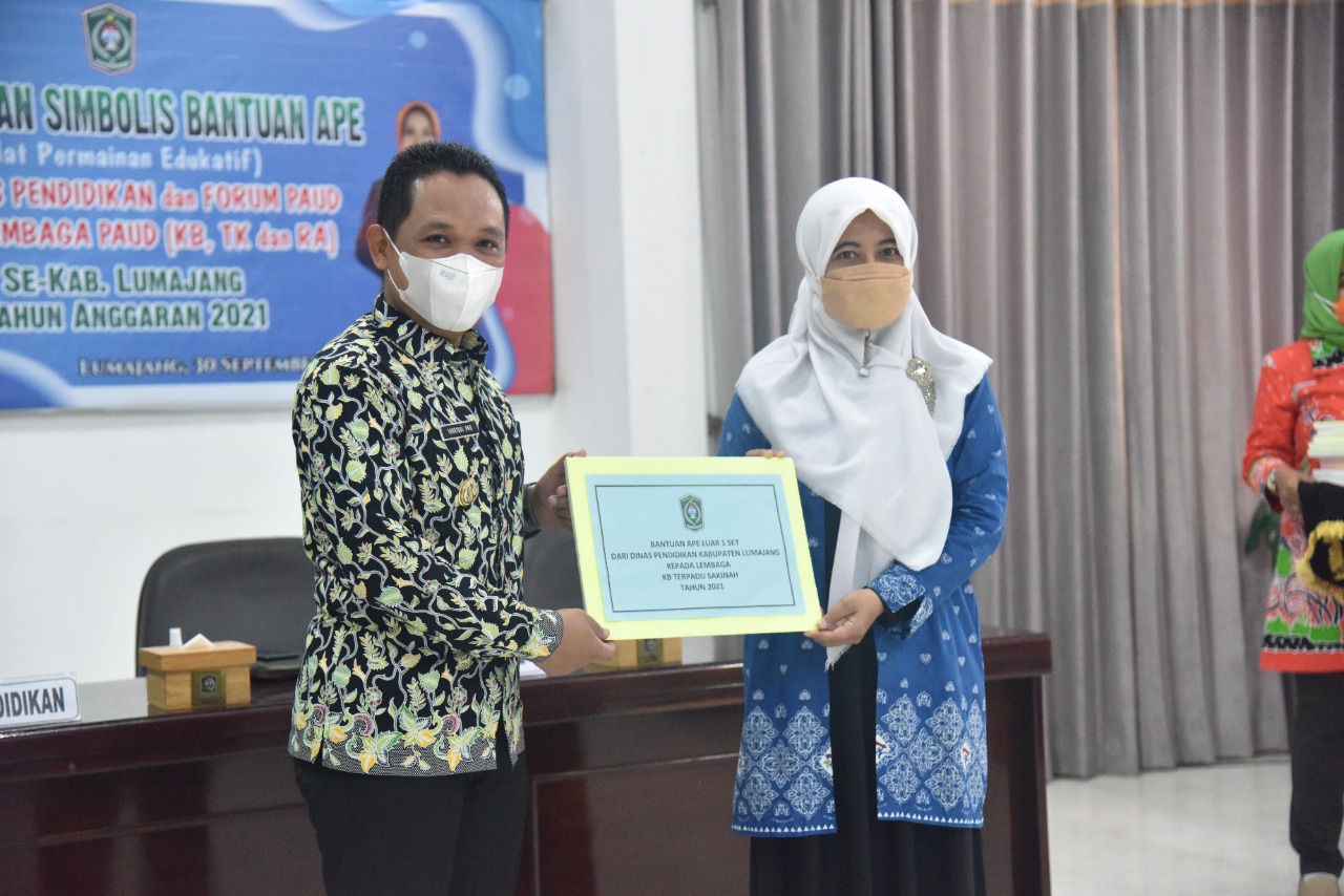 Bupati Lumajang Thoriqul Haq (Cak Thoriq) menyerahkan 95 Alat Permainan Edukatif (APE) indoor, dan 60 APE outdoor untuk TK, KB dan RA di Kabupaten Lumajang. Penyerahan dilakukan simbolis di Gedung Panti PKK Kabupaten Lumajang, Kamis (30/9/2021).