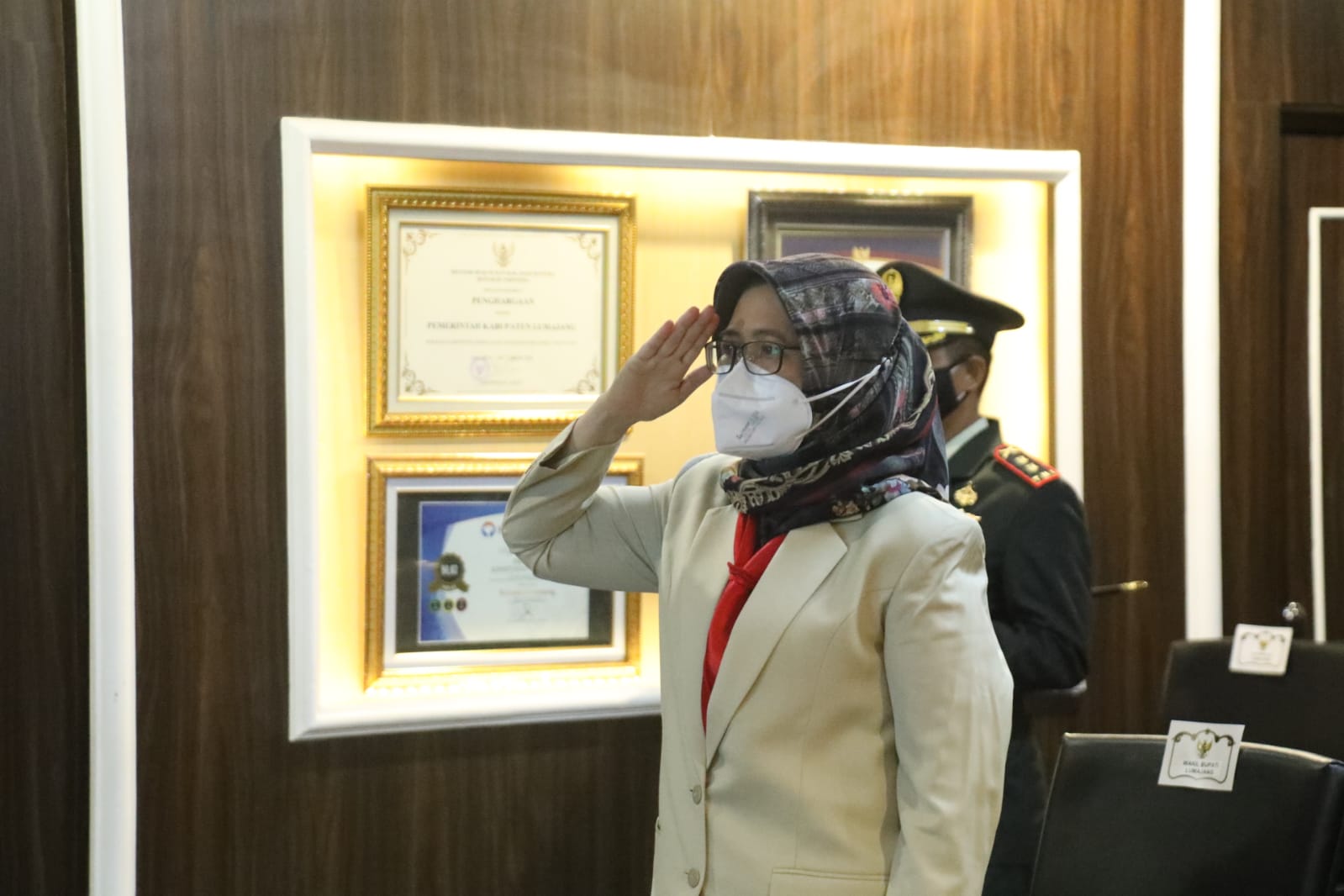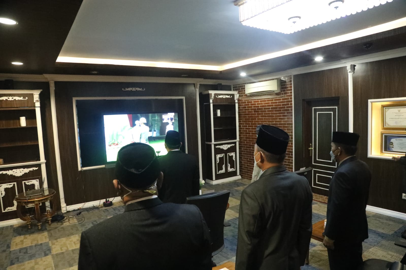Wakil Bupati Lumajang, Indah Amperawati beserta jajaran Forkompida Kabupaten Lumajang mengikuti Upacara Hari Kesaktian Pancasila Tahun 2021 yang dilaksanakan di Monumen Pancasila Sakti, Lubang Buaya, Jakarta Timur secara hybrid (kombinasi Daring dan Luring) dari Ruang Mahameru, Kantor Bupati Lumajang, Jum'at (1/10/2021).