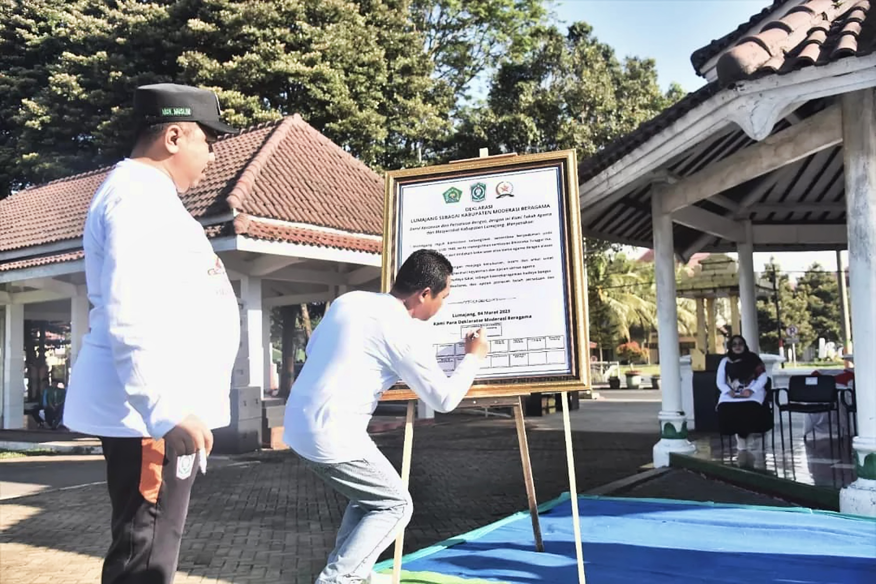 Kabupaten Lumajang, Jawa Timur mendeklarasikan diri menjadi Kabupaten Moderasi Beragama pertama di Indonesia. Deklarasi tersebut diikuti sedikitnya 5.281 di Alun-alun Lumajang, Sabtu (4/3/2023).