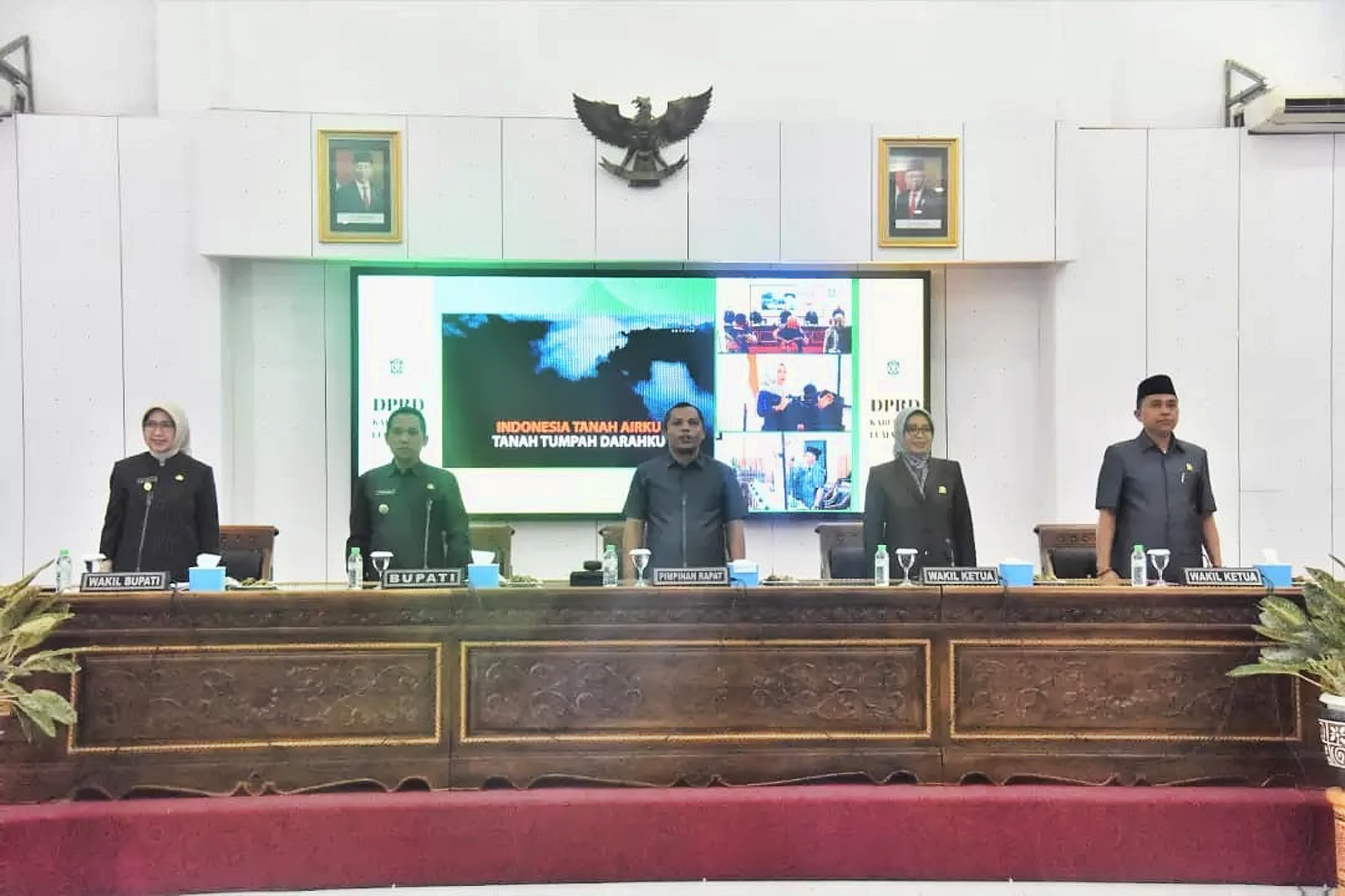 Bupati Lumajang Thoriqul Haq dan Wakil Bupati Lumajang Indah Amperawati menghadiri Sidang Paripurna I DPRD Kabupaten Lumajang, bertempat di Gedung DPRD Kabupaten Lumajang, Selasa (7/3/2023).