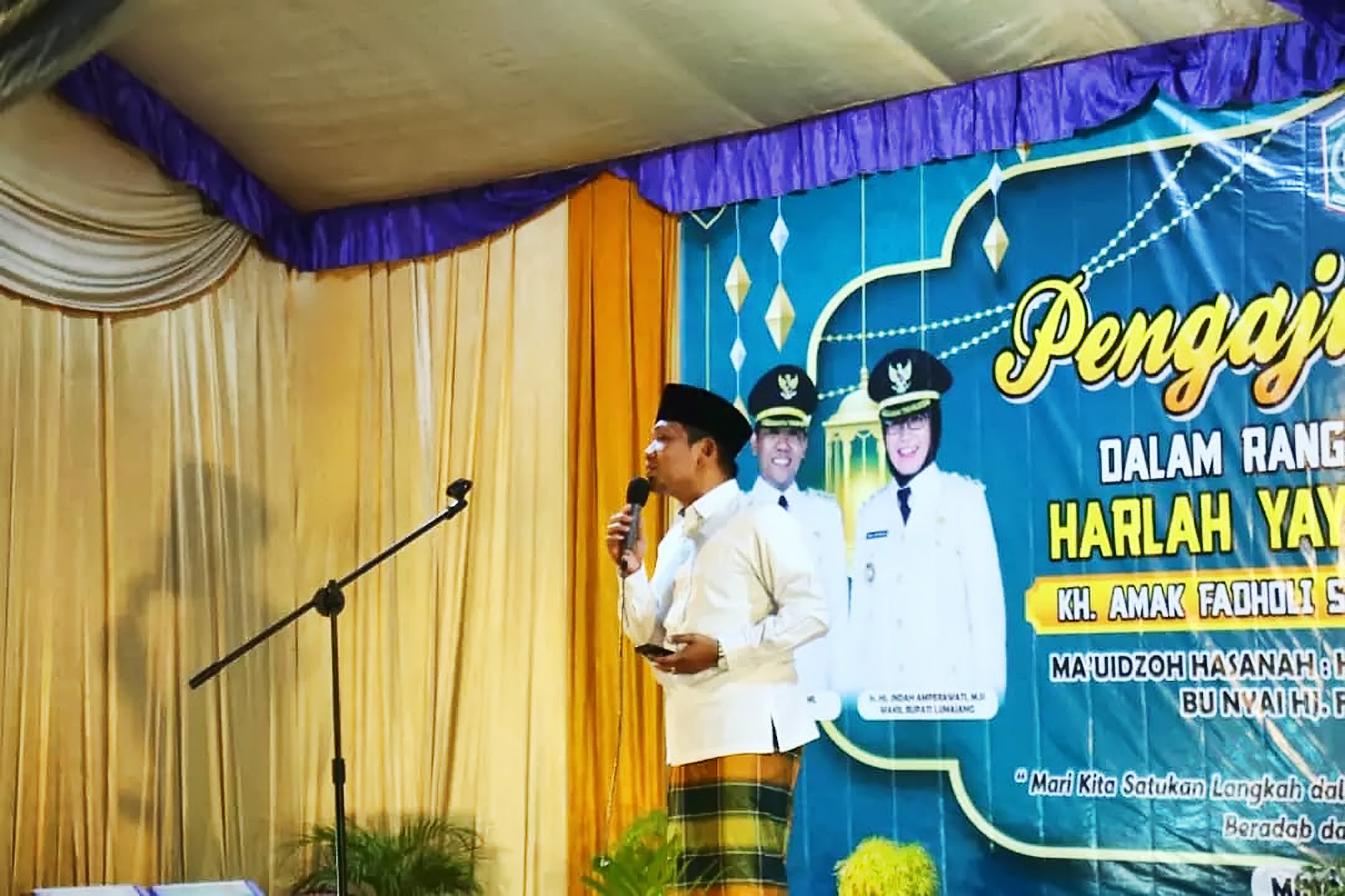 Bupati Lumajang, Thoriqul Haq menghadiri acara Pengajian Umum dalam rangka memperingati Harlah Yayasan dan Haul KH. Amak Fadholi serta Ibunyai Hj. Jauharoh, Minggu (12/3/2023) malam.