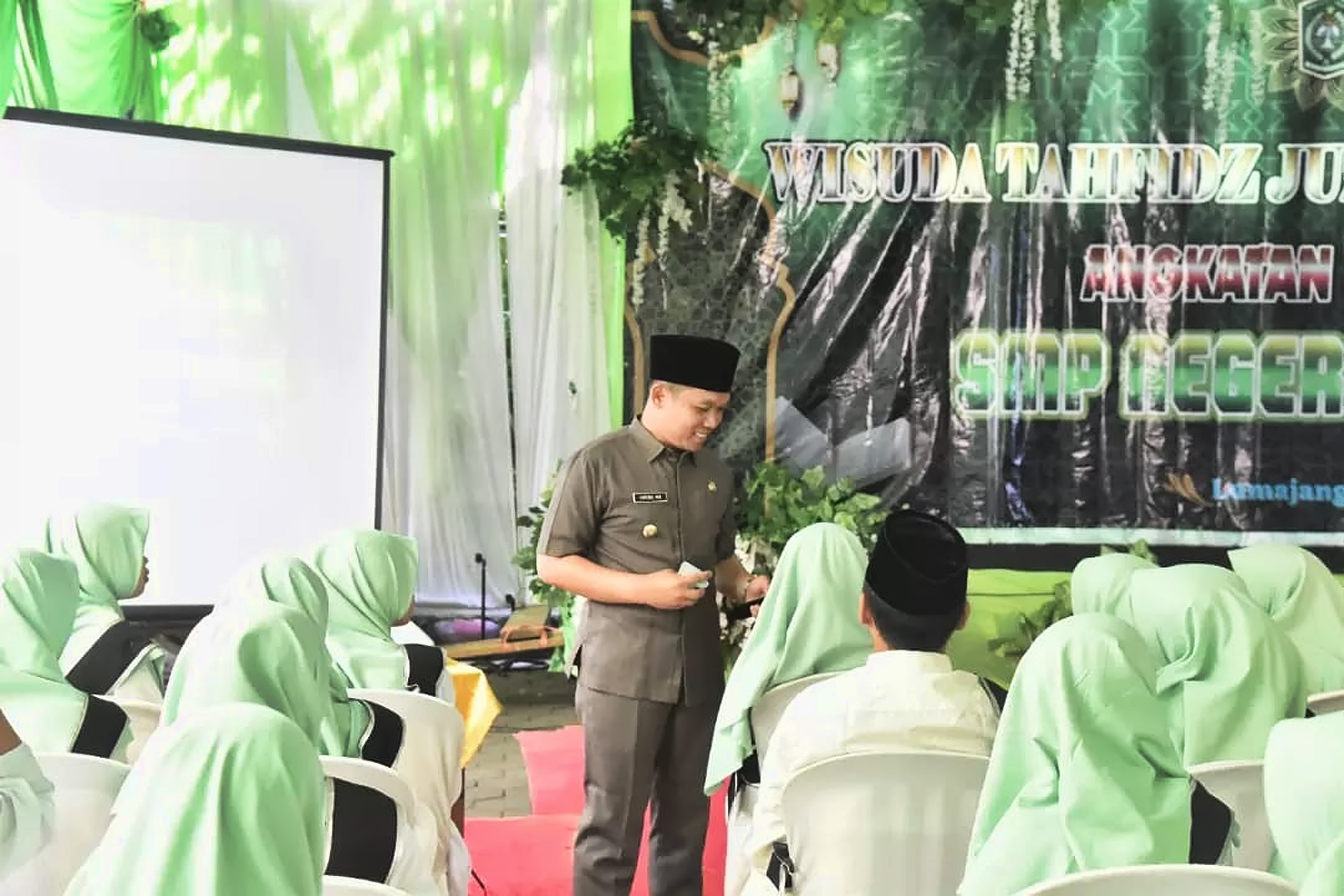"Tadi saya tanyai, ada yang kelas sembilan, delapan dan tujuh. Bahkan, yang kelas tujuh juga sudah ada yang tahfidz. Ini luar biasa sekali," kata Bupati Lumajang Thoriqul Haq (Cak Thoriq) saat memberikan arahan dalam Wisuda Tahfidz Juz 30 dan Khotmil Qur.'an Angkatan Pertama 2023 SMP Negeri 5 Lumajang, di Jl. Sastrodikoro No. 128 Citrodiwangsan Lumajang, Rabu (15/3/2023).
