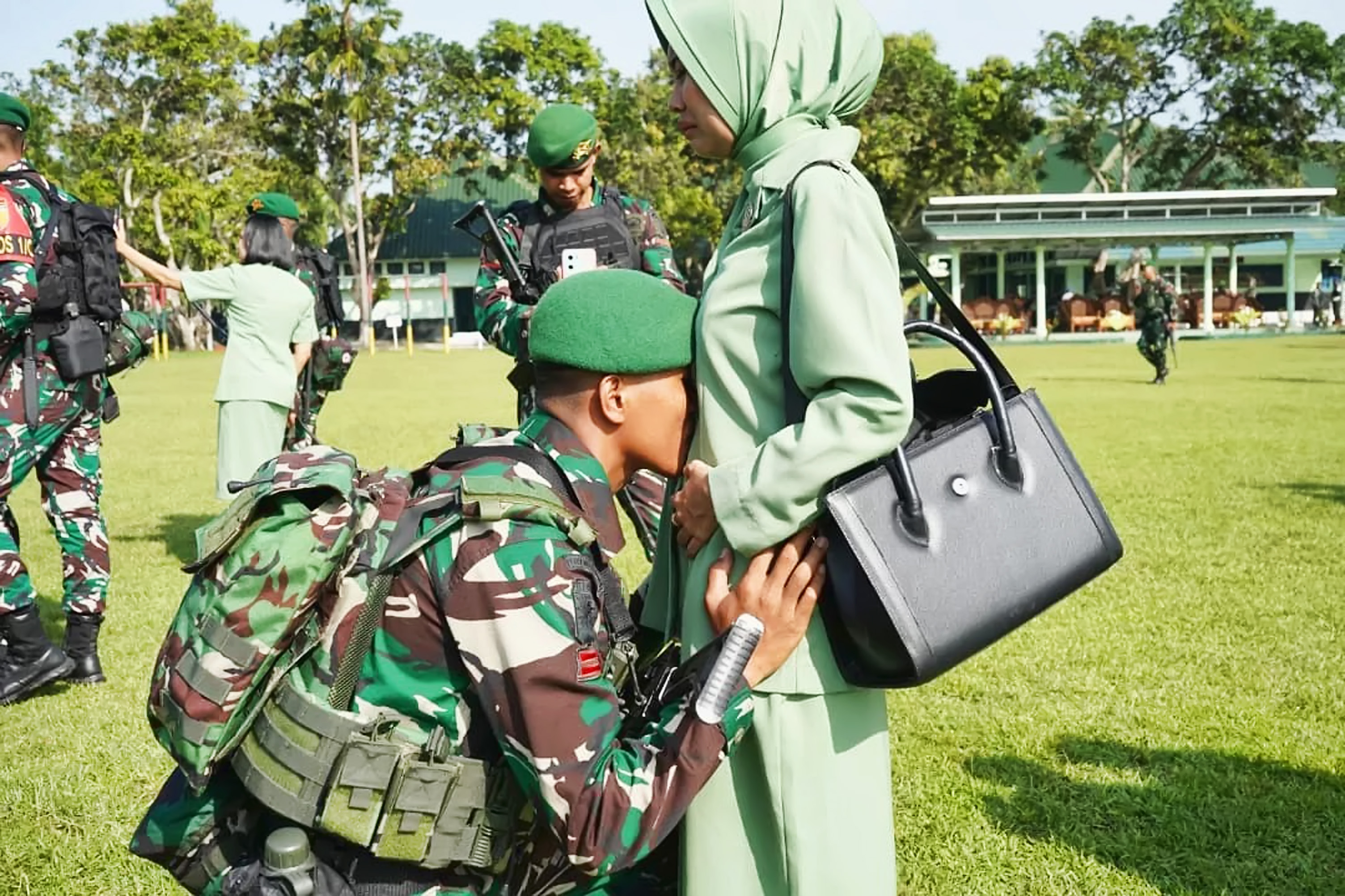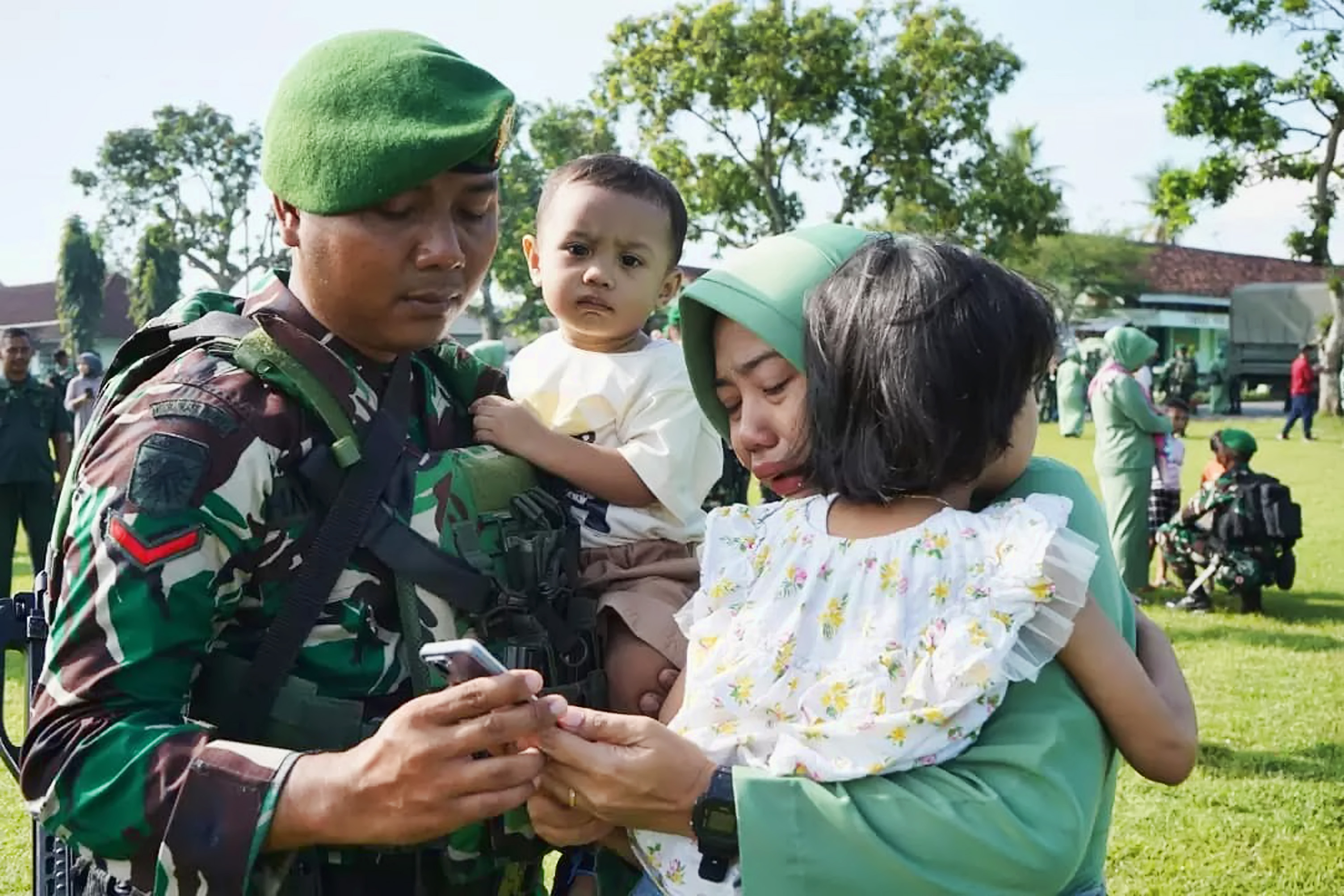Bupati Lumajang, Thoriqul Haq melepas Satgas Pamtas RI-PNG Kewilayahan Yonif 527/BY Tahun 2023, di Lapangan Pratu Natra Mako Yonif 527/BY yang akan melaksanakan tugas pengamanan di perbatasan timur Indonesia, Jumat (31/3/2023).