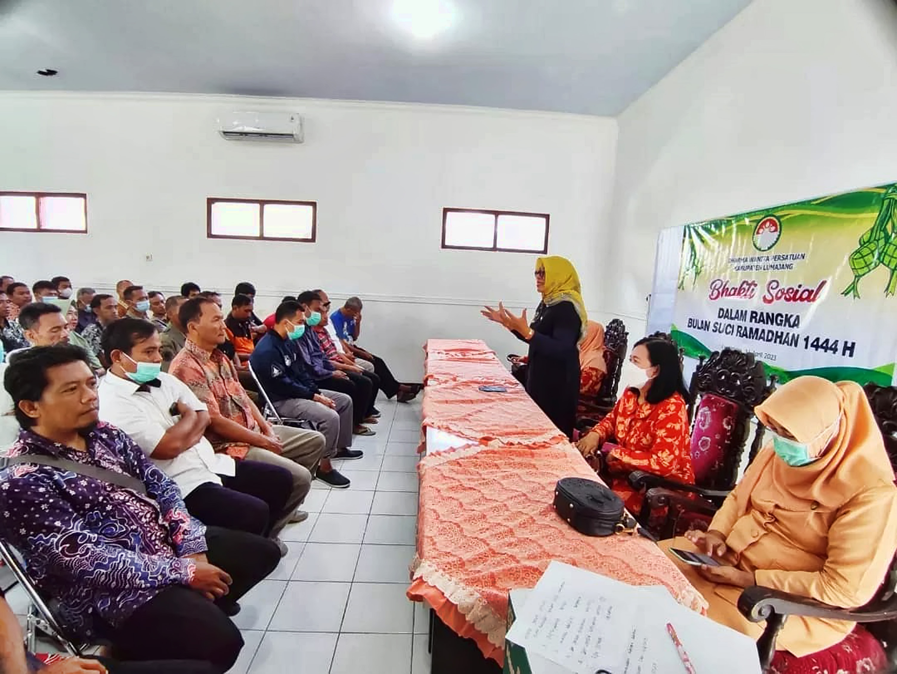 Hal tersebut disampaikan oleh Ketua Dharma Wanita Persatuan Kabupaten Lumajang Rahayu Agus Triyono saat menyerahkan 64 paket bantuan berupa Sembako bagi ASN Pemkab Lumajang ASN Golongan I, II dan Tenaga Kebersihan, bertempat di Ruang Pertemuan Sekretariat DWP Kabupaten Lumajang, Selasa (11/4/2023).