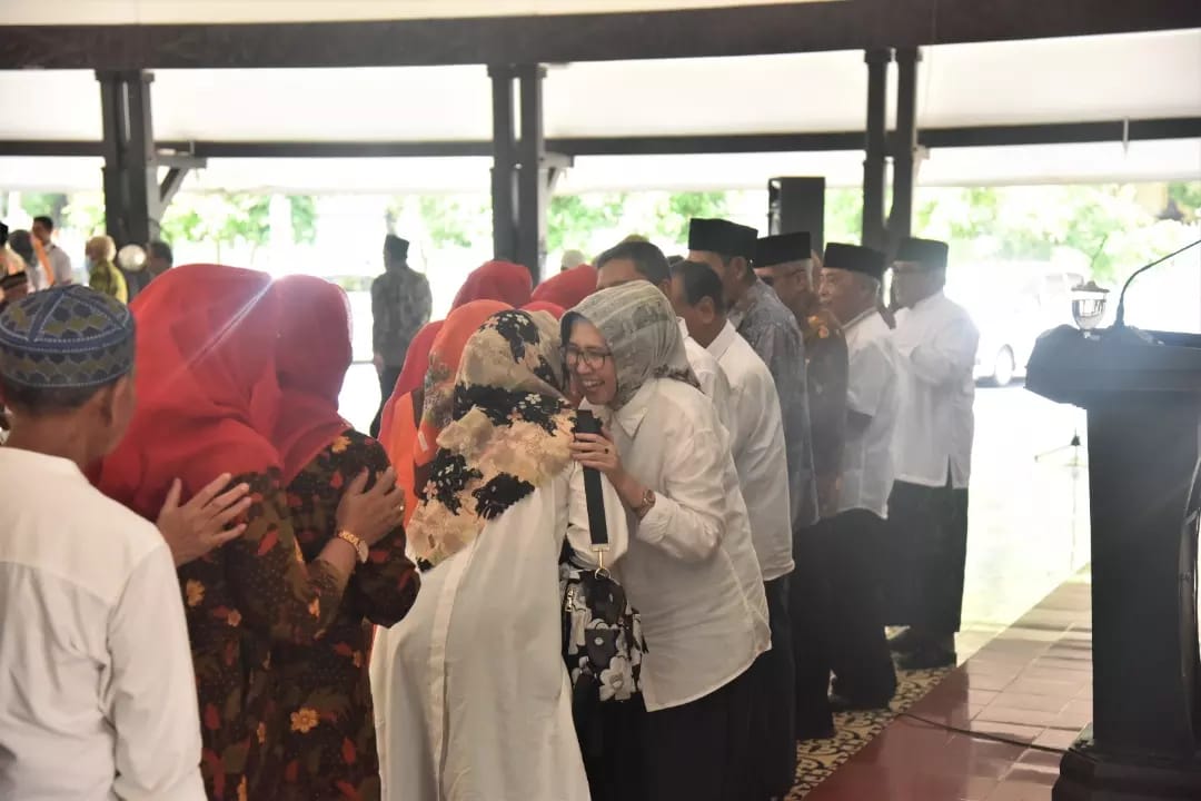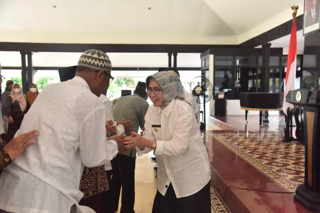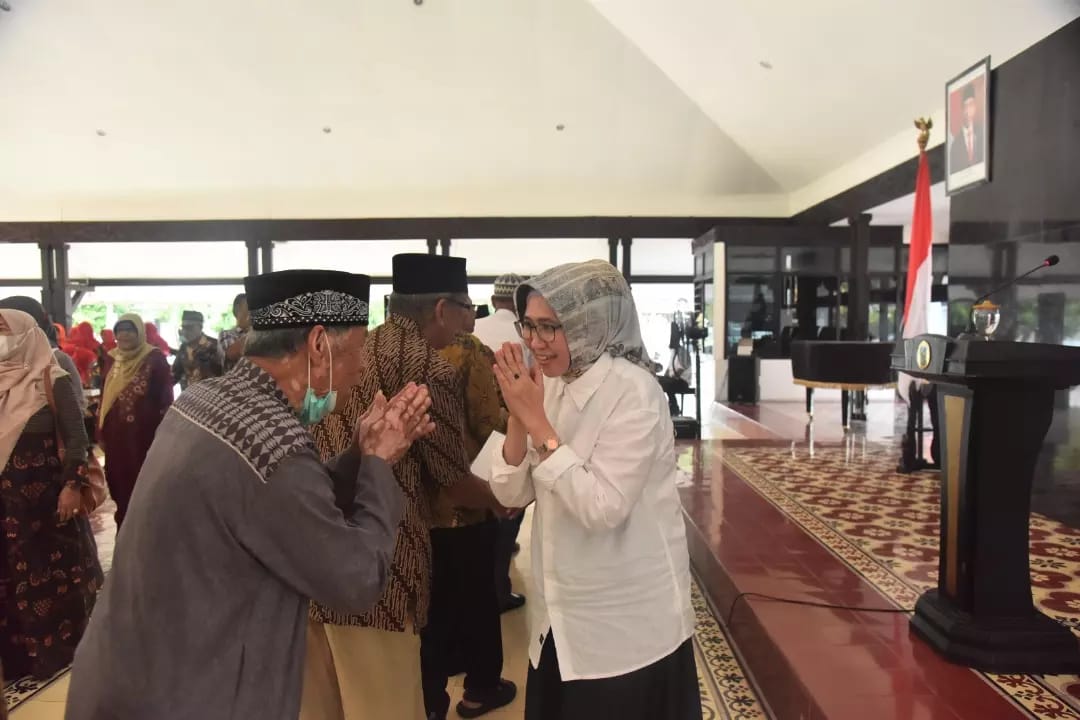 Bupati Lumajang Thoriqul Haq dan Wakil Bupati Lumajang, Indah Amperawati menghadiri acara Halal Bi Halal Keluarga Besar Paguyuban Melati, Paguyuban Wal Asri, PWRI Lumajang, yang bertempat di Pendopo Arya Wiraraja Lumajang, Rabu (3/5/2023).