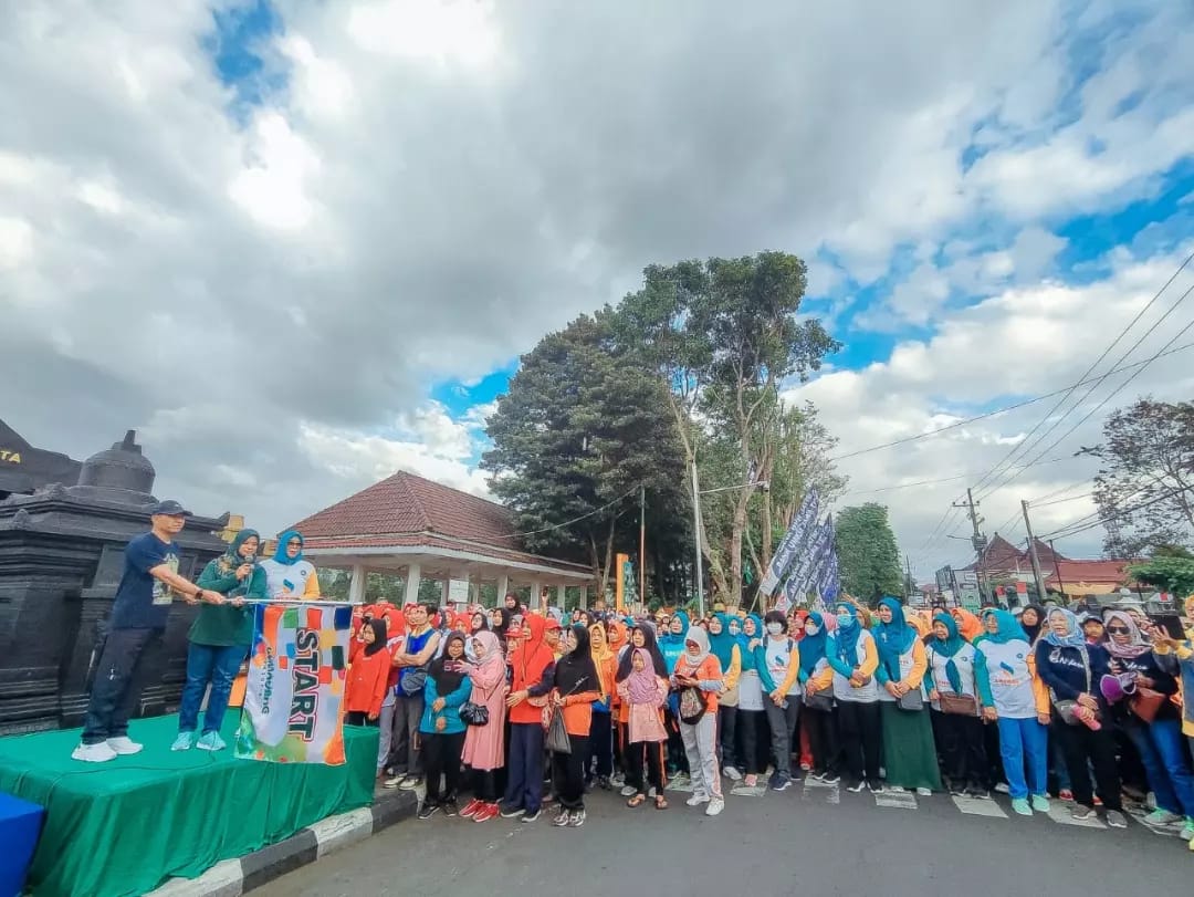 Ratusan masyarakat ramaikan Jalan Santai yang diselenggarakan TP. PKK Kabupaten Lumajang dalam rangka memperingati Hari Kesatuan Gerak (HKG) PKK ke-51 di Alun-alun Lumajang, Minggu (14/5/2023).