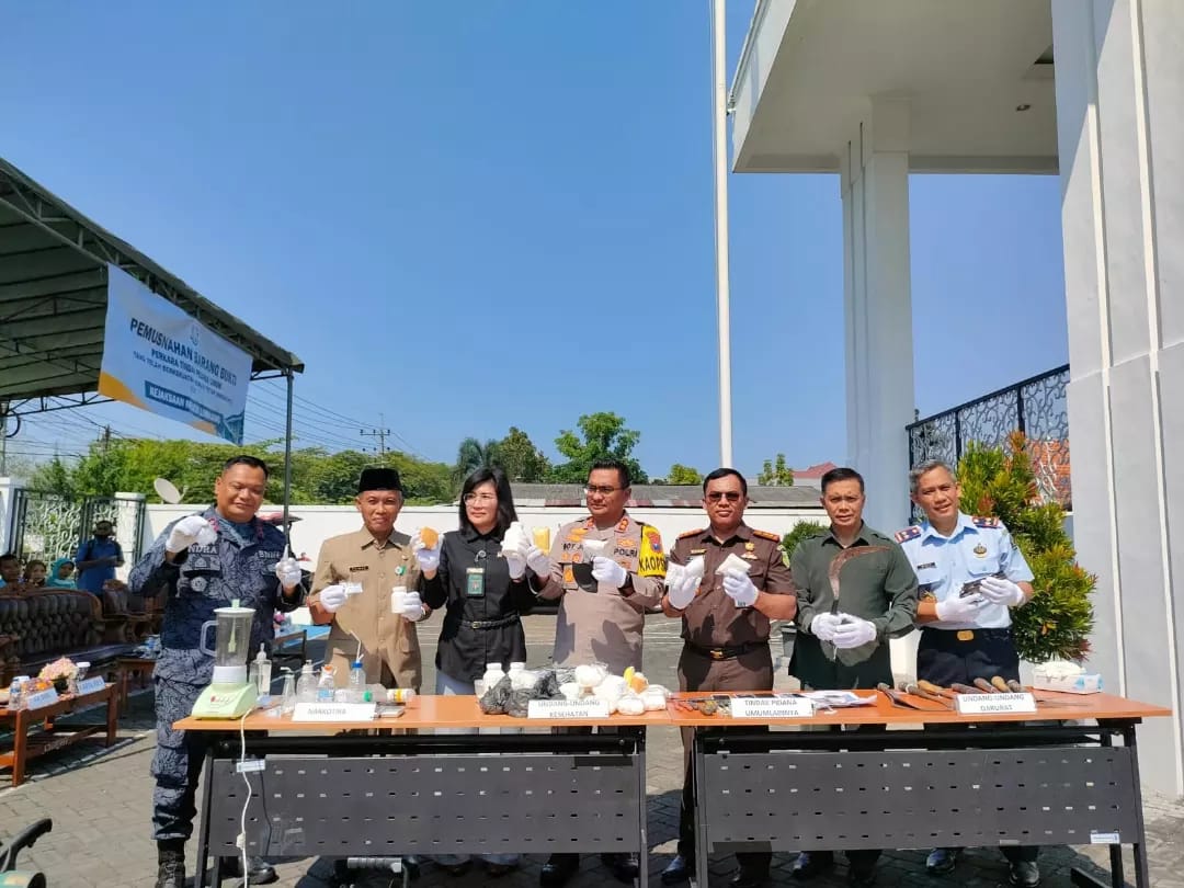 Forum Koordinasi Pimpinan Daerah (Forkopimda) Kabupaten Lumajang melakukan Pemusnahan Barang Bukti Perkara Tindak Pidana Umum yang Telah Berkekuatan Hukum Tetap (Inkracht) pada Kejaksaan Negeri Lumajang Tahun 2023.