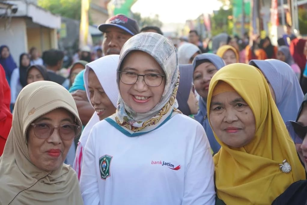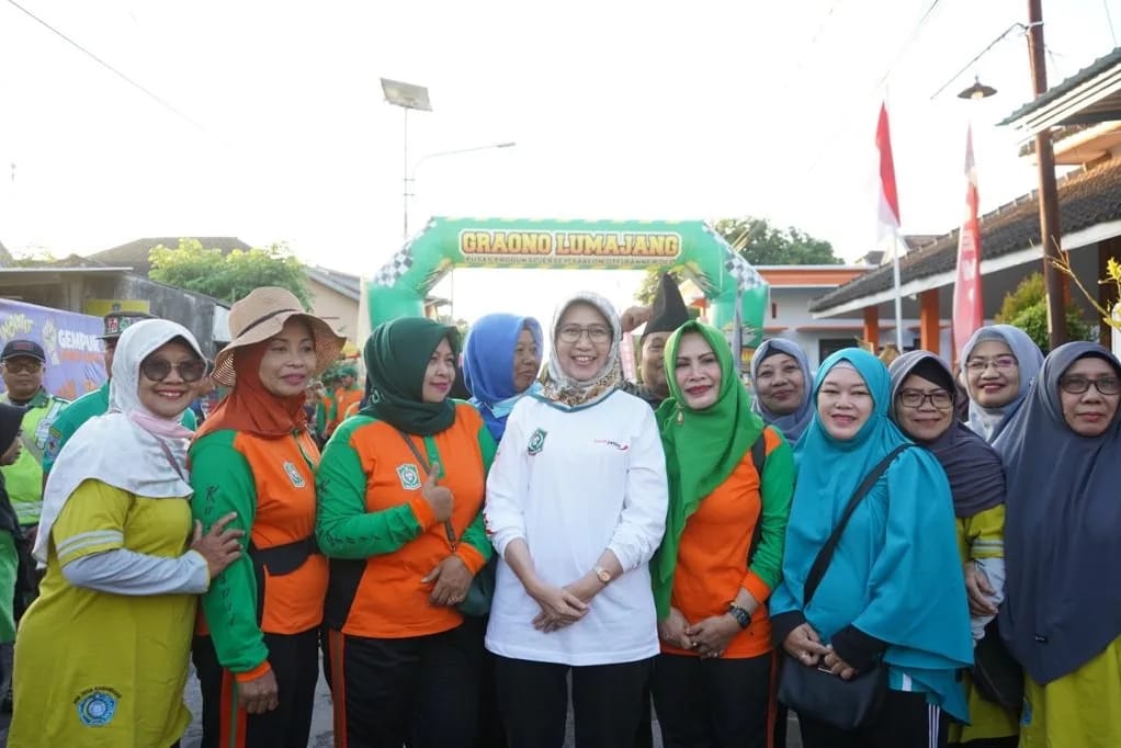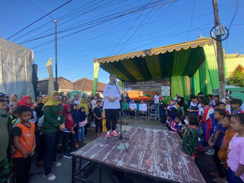 Wakil Bupati Lumajang Indah Amperawati (Bunda Indah) memberangkatkan peserta jalan santai dalam rangka Menggempur Rokok Ilegal, di Desa Karangsari Kecamatan Sukodono Kabupaten Lumajang, Jawa Timur, Minggu (28/5/2023).