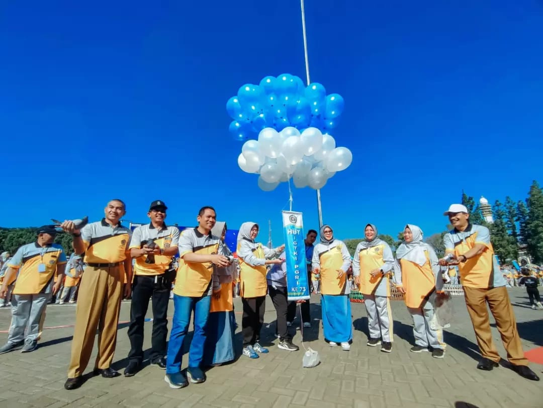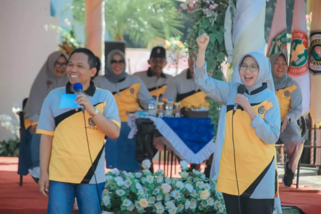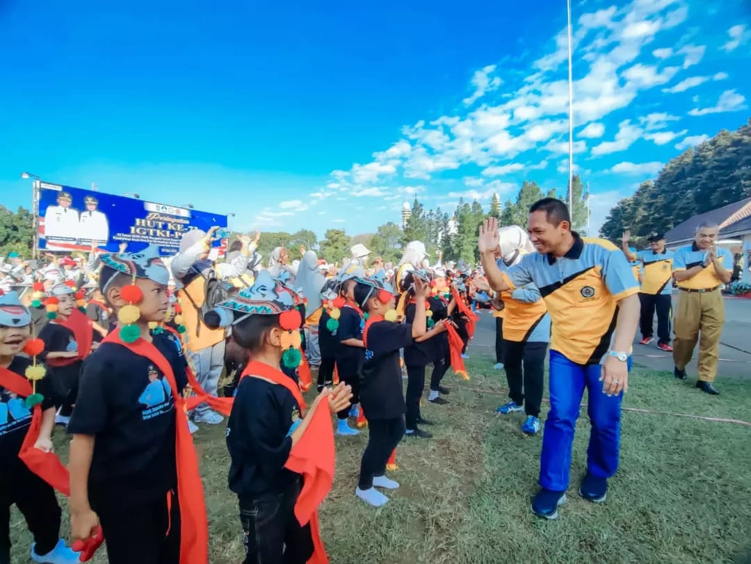 Bupati Lumajang Thoriqul Haq bersama Wakil Bupati Lumajang, Indah Amperawati menghadiri kegiatan Peringatan HUT ke-73 IGTKI - PGRI Kabupaten Lumajang Tahun 2023, di Alun-Alun Kabupaten Lumajang, Senin (29/5/2023).