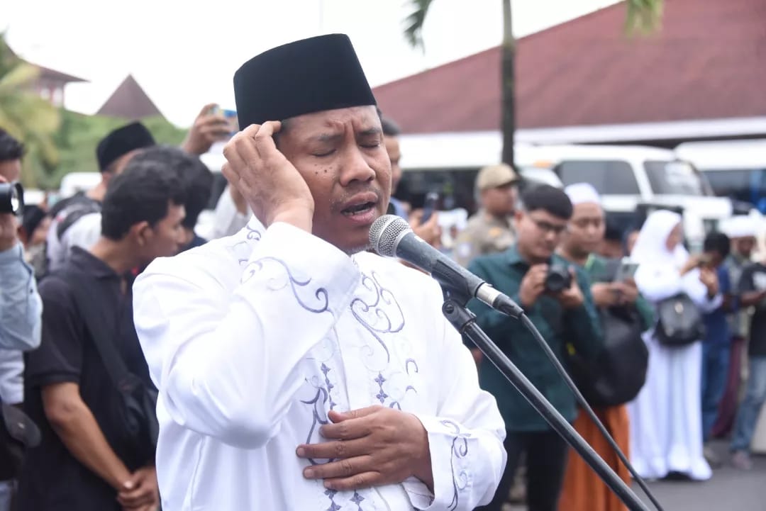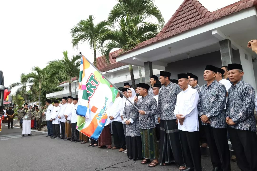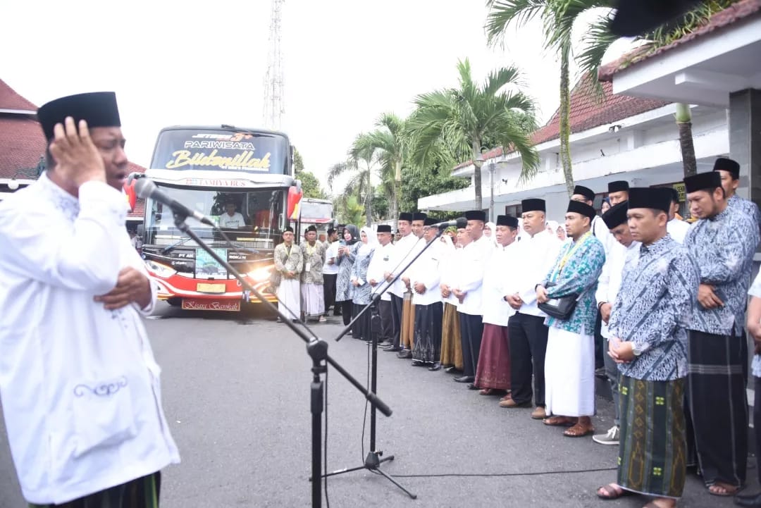 Bupati Lumajang Thoriqul Haq melepas dan memberangkatkan 2 kloter jemaah haji Kabupaten Lumajang, yakni kloter 48 dan 49, dari Pendopo Arya Wiraraja Lumajang, Sabtu (10/6/2023) sore.
