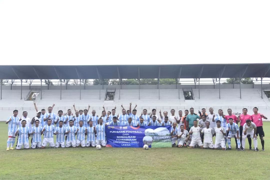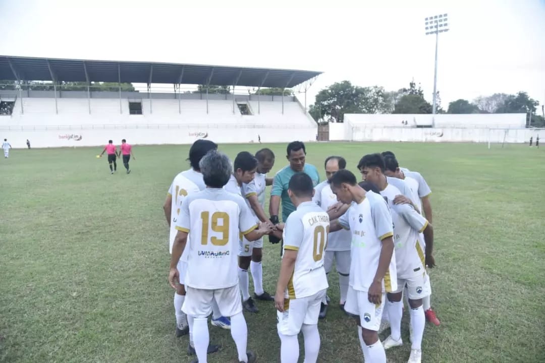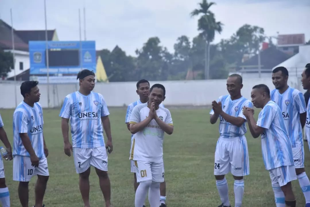 "Biar tetap sehat ya olahraganya main bola," ujarnya saat melakoni laga persahabatan melawan UNESA FC di Stadion Semeru Lumajang , Sabtu (10/6/2023).