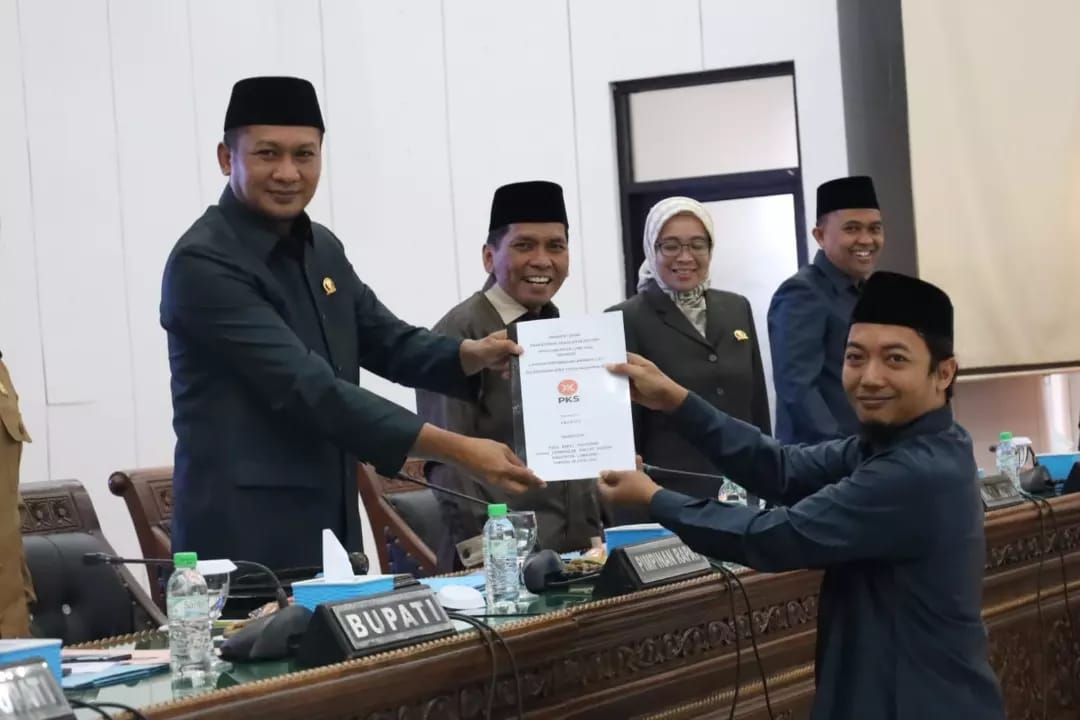 Bupati Lumajang Thoriqul Haq dan Wakil Bupati Lumajang, Indah Amperawati menghadiri rapat Paripurna DPRD Kabupaten Lumajang, bertempat di Ruang Sidang Gedung DPRD Lumajang, Senin (26/6/2023).