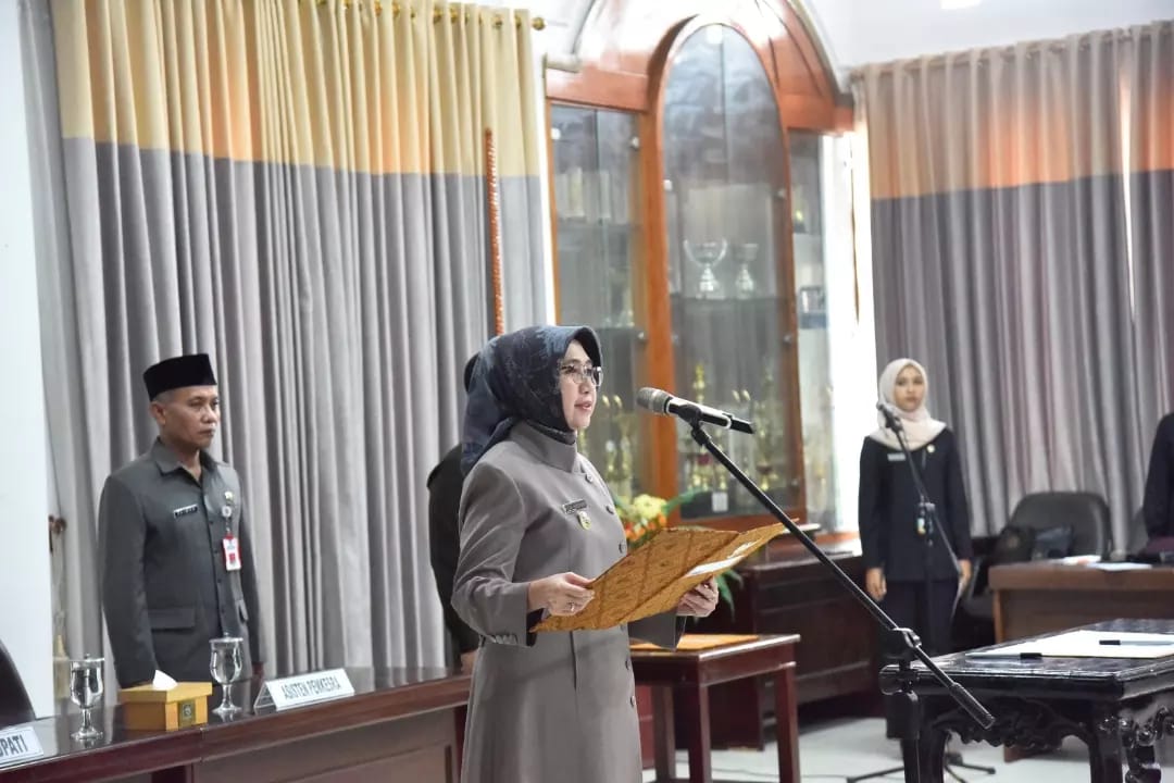 Wakil Bupati Lumajang, Indah Amperawati (Bunda Indah) berpesan kepada dua orang Penjabat (Pj) Kepala Desa terlantik, agar nantinya bisa melaksakan seluruh tugas, kewajiban dan tanggung jawab dengan amanah, utamanya dalam melayani masyarakat dengan sepenuh hati, serta dapat menjaga keamanan di walayahnya agar selalu kondusif.