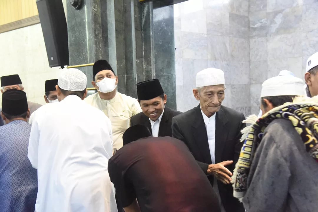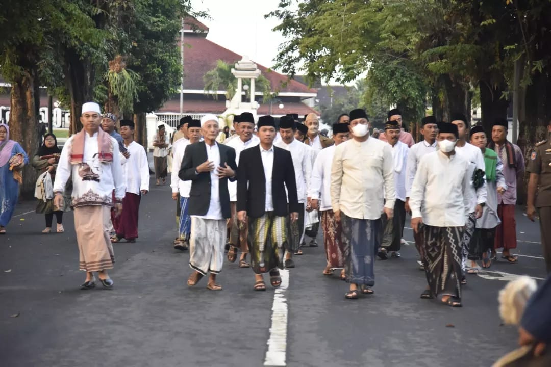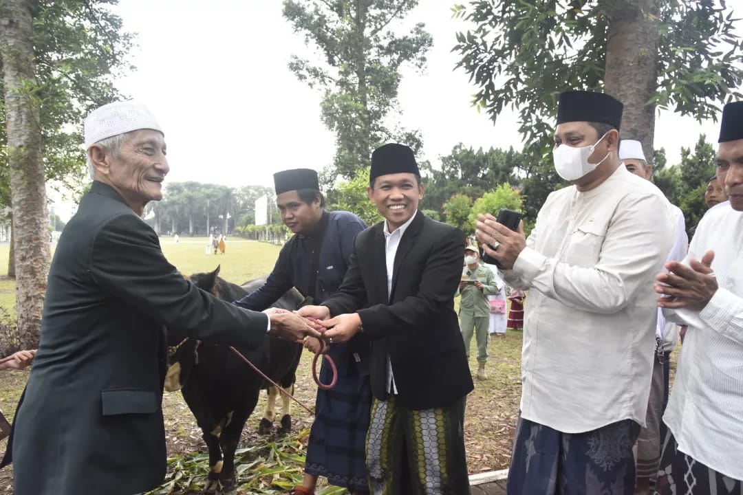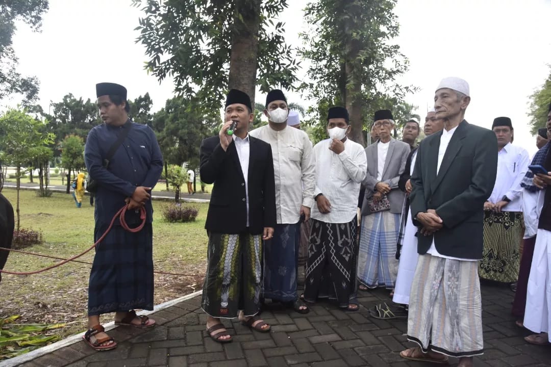 Bupati Lumajang, Thoriqul Haq beserta Jajaran Forkompimda, Sekertaris Daerah Lumajang dan Kepala Perangkat Daerah Pemerintah Daerah Kabupaten Lumajang bersama ribuan jamaah kaum muslimin di Lumajang, melaksanakan Salat Iduladha 1444 H, di Masjid Agung Kh. Anas Machfudz Lumajang, Kamis (29/6/2023) pagi