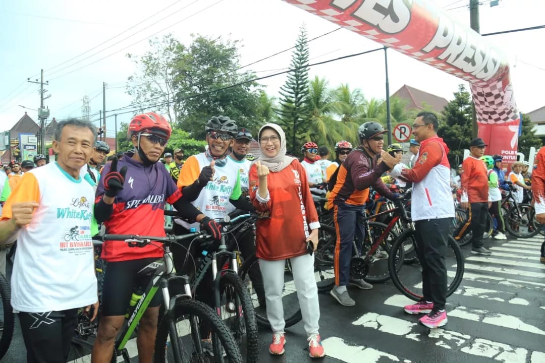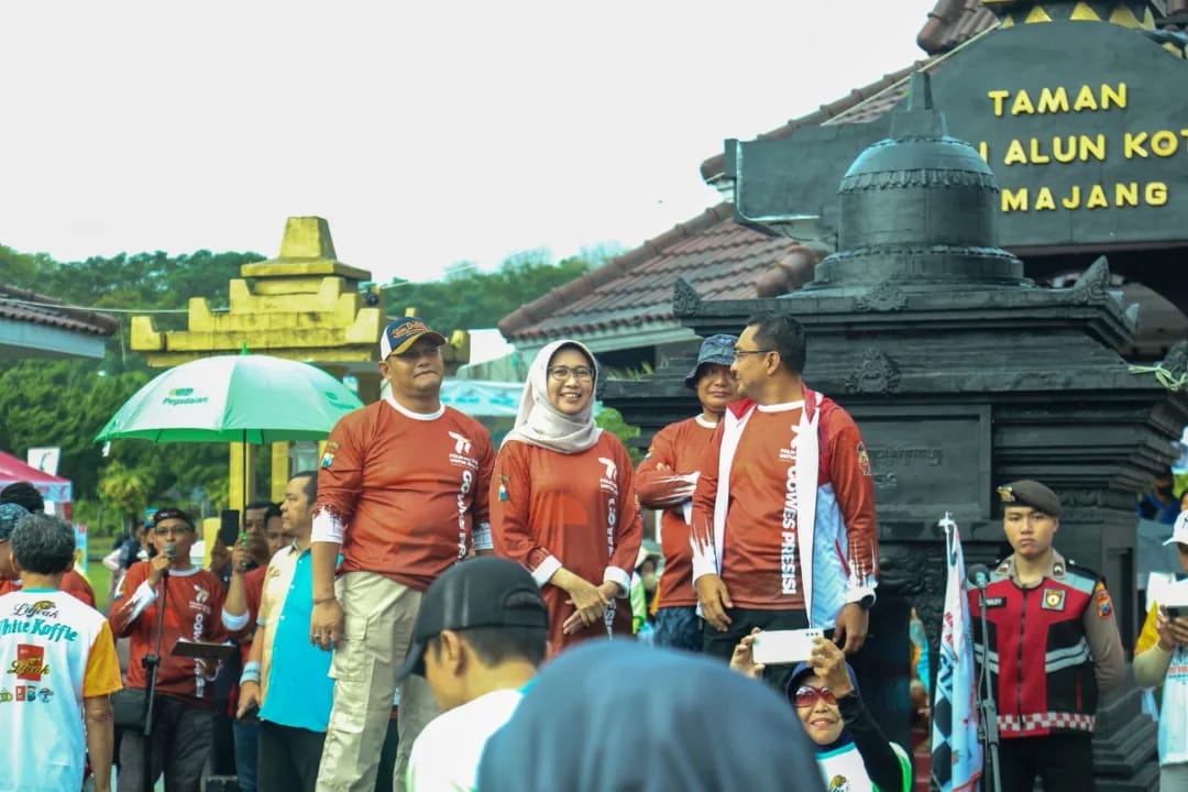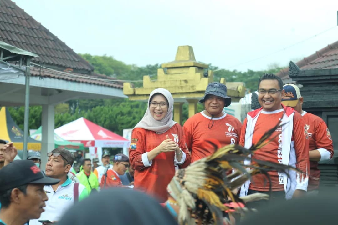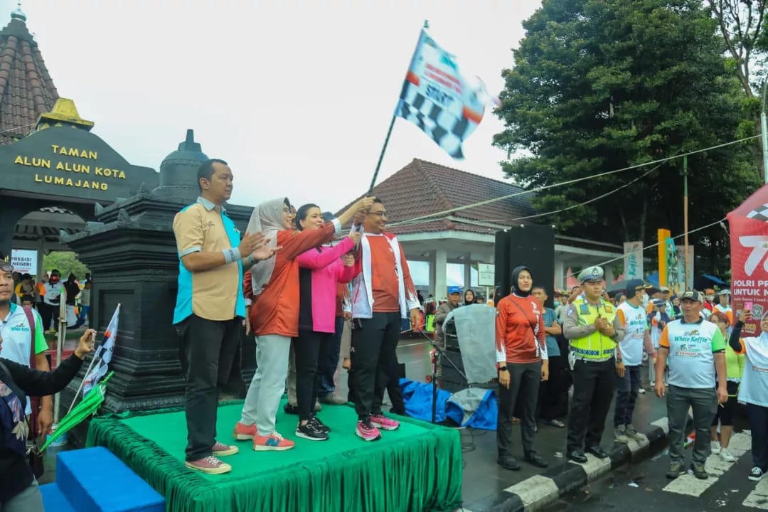 Wakil Bupati Lumajang, Indah Amperawati (Bunda Indah) beserta Kapolres Lumajang, AKBP. Boy Jeckson Situmorang dan Dandim 0821 Lumajang, Lerkol. CZI Gunawan Indra Yitno, melepas ratusan Goweser, yang kemudian dilanjut melepas ratusan peserta jalan santai.