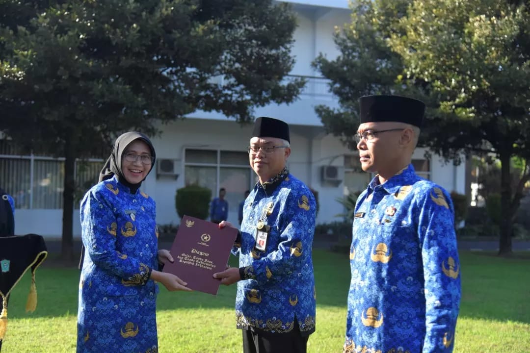 SK tersebut diserahkan secara simbolis oleh Wakil Bupati Lumajang, Indah Amperawati dalam upacara bendera, bertempat di Halaman Kantor Bupati Lumajang, Senin (17/7/2023).