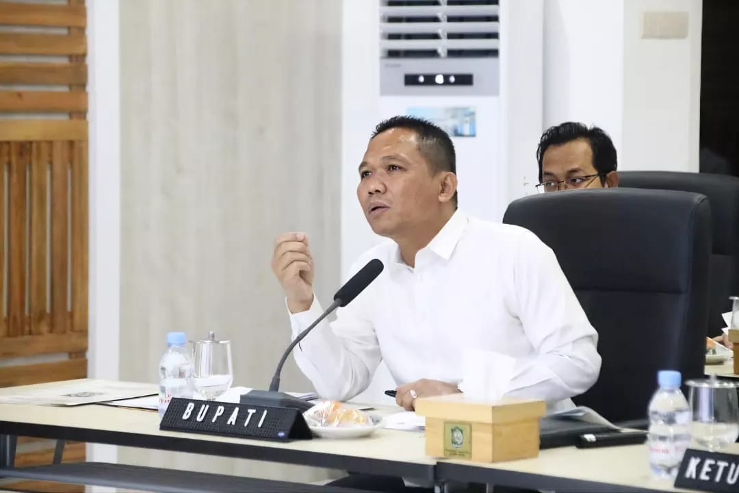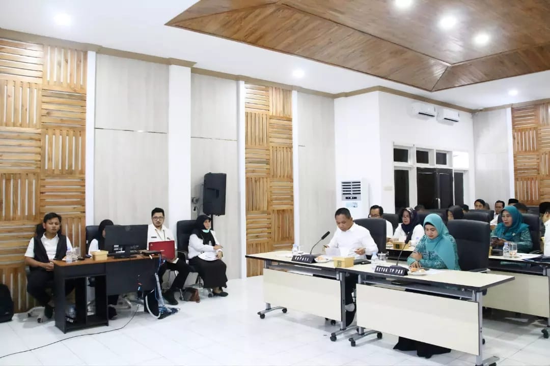 Bupati Lumajang Thoriqul Haq (Cak Thoriq) memaparkan perkembangan Pencegahan dan Penanganan Stunting Terintegrasi di Kabupaten Lumajang, kepada Tim Penilai Kinerja Kabupaten/ Kota dalam Percepatan Penurunan Stunting Terintegrasi Provinsi Jawa Timur Tahun 2023, bertempat di Command Centre Room, Kantor Bupati Lumajang, Rabu (9/8/2023).