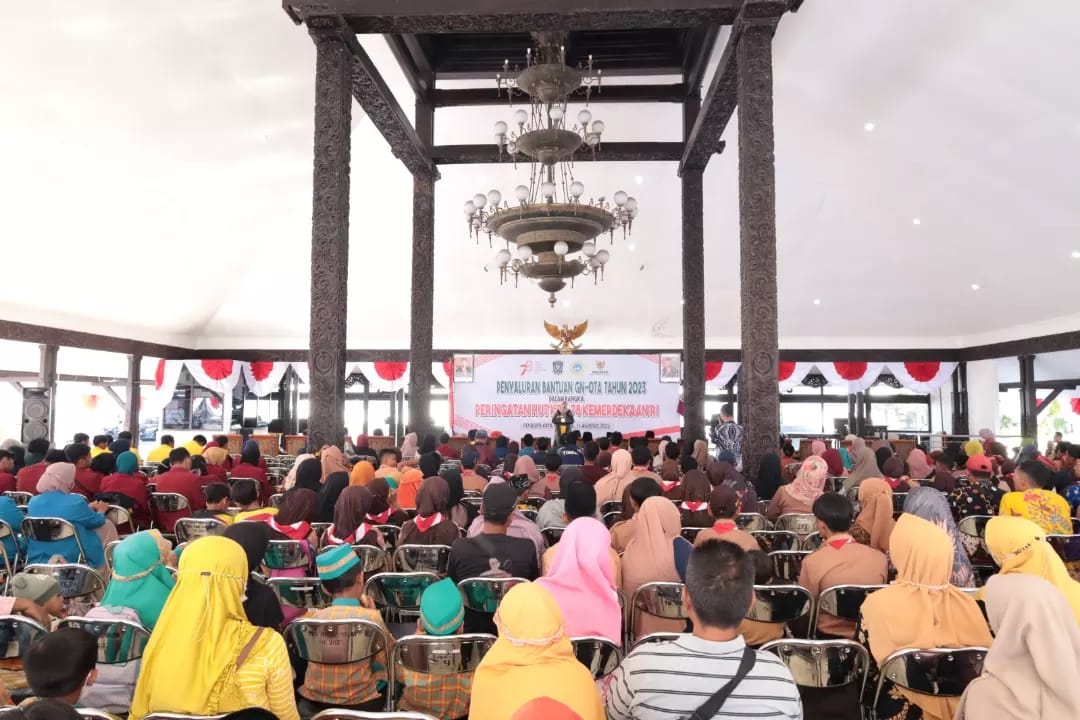 alam rangka memperingati HUT Kemerdekaan Republik Indonesia ke-78, Yayasan Gerakan Nasional Orang Tua Asuh (GNOTA) Kabupaten Lumajang memberikan bantuan pendidikan kepada ratusan siswa SD dan SMP serta puluhan Mahasiswa di Kabupaten Lumajang. Bantuan tersebut diberikan secara simbolis di Pendopo Kabupaten Lumajang, Jumat (11/8/2023).