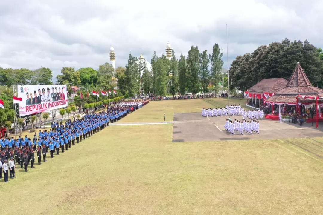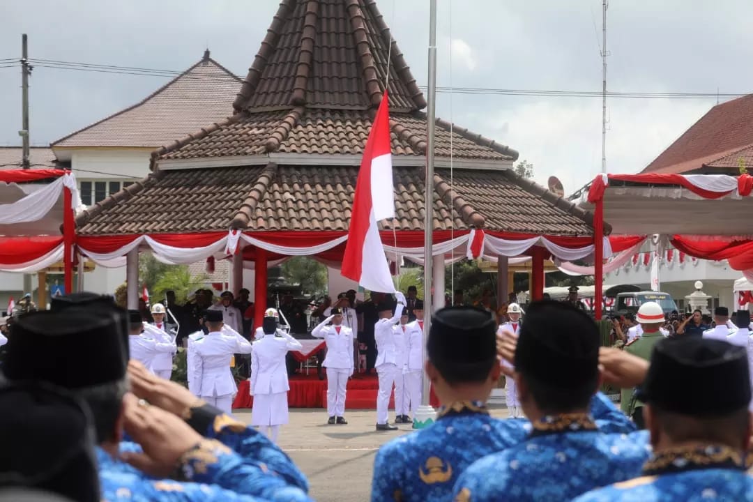 Upacara Detik-Detik Proklamasi, dalam rangka Hari Ulang Tahun (HUT) Kemerdekaan Republik Indonesia (RI) Ke-78 di Kabupaten Lumajang, digelar di Alun-Alun Kabupaten Lumajang, Kamis (17/8/2023), berjalan dengan lancar dan khidmat.