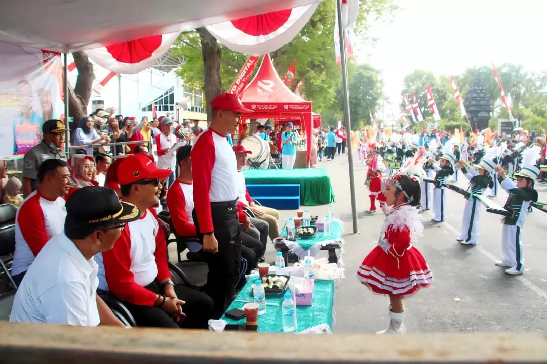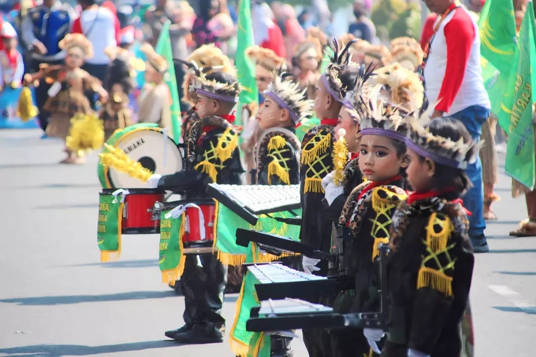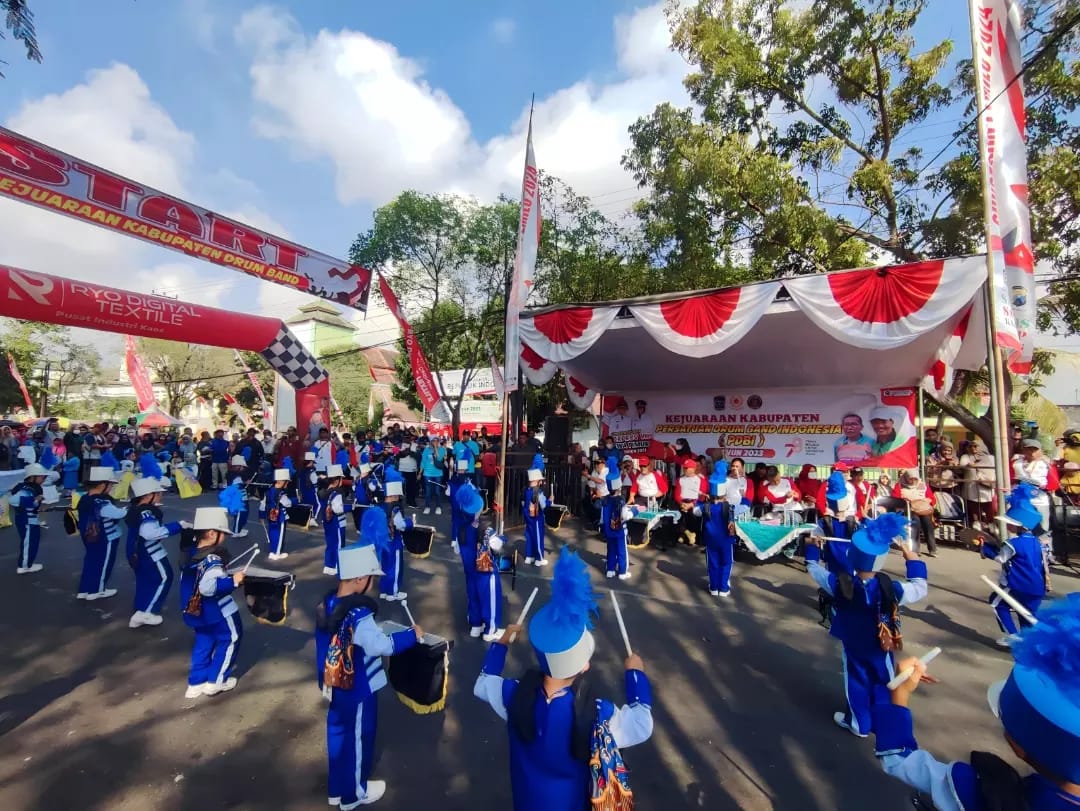 Puluhan peserta parade drumben turut meramaikan Even Kejuaraan Kabupaten (Kejurkab) Persatuan Drum Band Indonesia (PDBI) 2023 dalam rangka Memperingati HUT ke-78 Kemerdekaan Republik Indonesia.