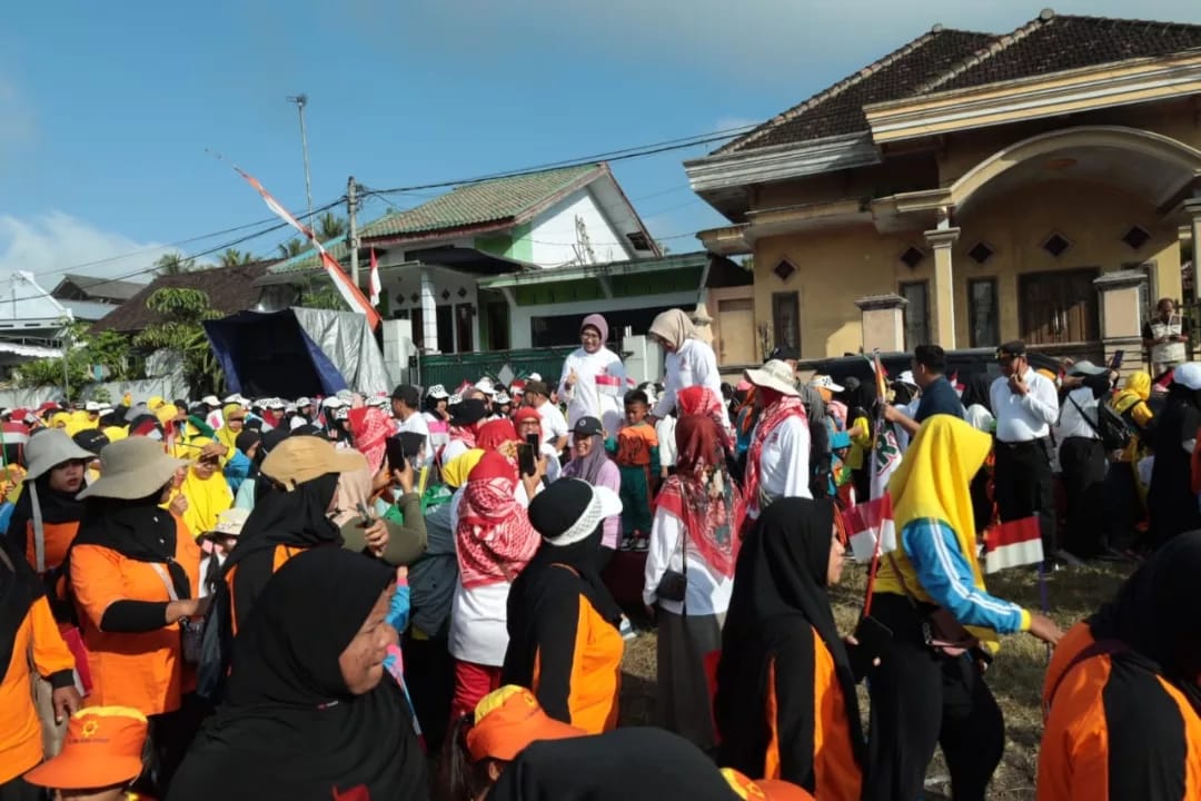 Wakil Bupati Lumajang, Indah Amperawati mengapresiasi pertunjukan tari topeng kaliwungu yang dilakukan oleh ratusan anak didik Paud di Kecamatan Candipuro.