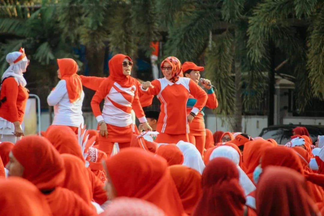 “Mari kita kampanyekan pola hidup sehat dengan berolahraga. Dengan kita sosialisasi dan edukasi kepada masyarakat, maka masyarakat bisa mengetahui tentang pentingnya olahraga, khususnya bagi wanita,” kata Ketua Dharma Wanita Persatuan Kabupaten Lumajang, Rahayu Agus Triyono saat kegiatan Senam Pokok e Obah dalam rangka Menyemarakkan HUT ke-78 RI, bertempat di Stadion Semeru Lumajang, Selasa (29/8/2023).