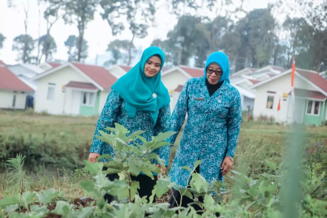 Tim Penggerak Pemberdayaan dan Kesejahteraan Keluarga (TP PKK) kabupaten Lumajang, menyerahkan ribuan bibit tanaman sayuran kepada warga blok P, di kawasan Bumi Semeru Damai (BSD), Desa Sumbermujur Kecamatan Candipuro Kabupaten Lumajang, Jawa Timur.