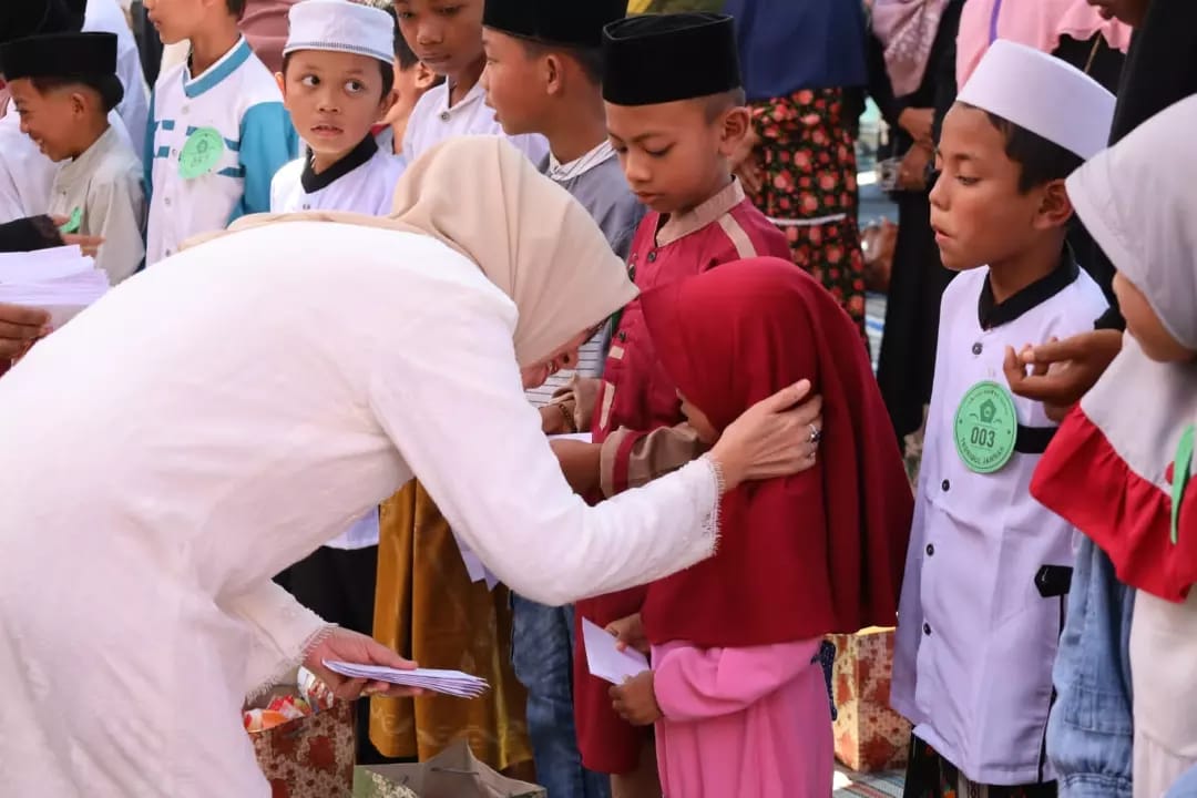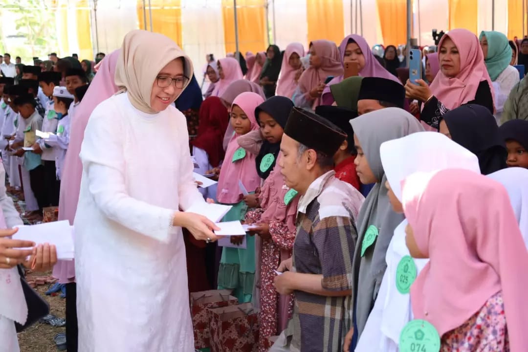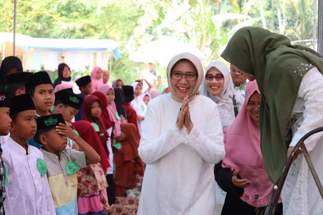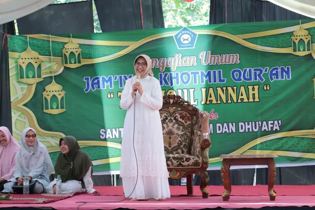 Wakil Bupati Lumajang Indah Amperawati (Bunda Indah) menghadiri Pengajian Umum Jam'iyah Khotmil Quran Thoriqul Jannah, dalam rangka santunan anak yatim dan dhuafa, di Lapangan Kecamatan Ranuyoso Kabupaten Lumajang, Minggu (10/9/2023).