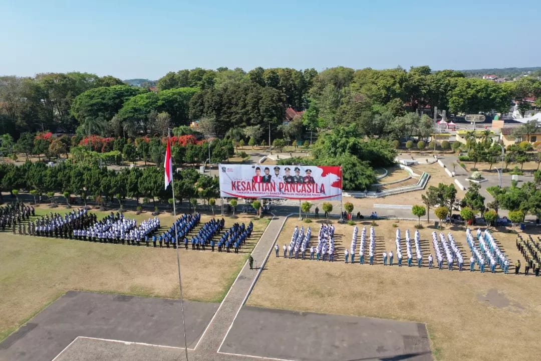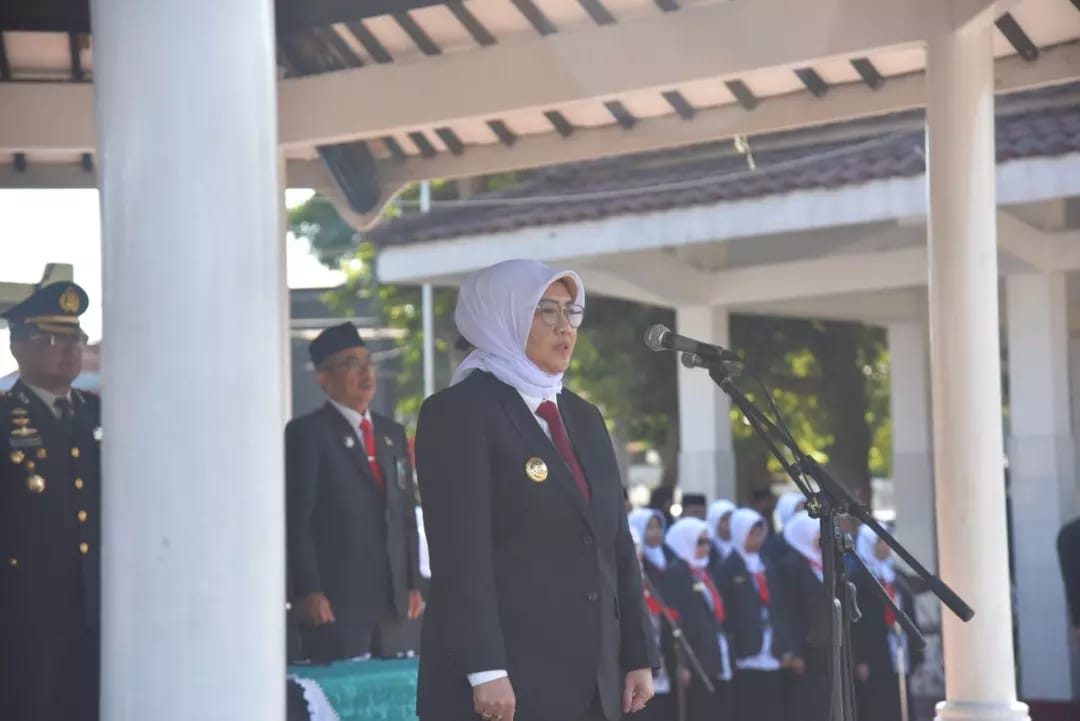 Pj. Bupati Lumajang, Indah Wahyuni (Yuyun) memimpin Upacara Peringatan Hari Kesaktian Pancasila, di Alun-alun Lumajang, Senin (2/10/2023).