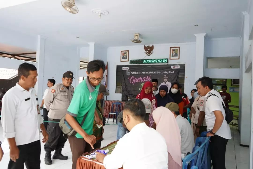Warga menyambut antusias Operasi Pasar yang digelar Dinas Koperasi, Usaha Kecil Menengah, Perindustrian dan Perdagangan Kabupaten Lumajang di Kecamatan Jatiroto, Rabu (4/10/2023). Warga bahkan rela mengantri setengah jam sebelum Operasi Pasar dimulai.