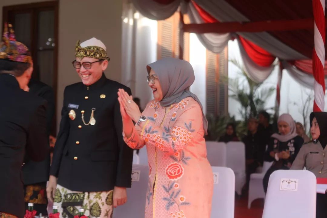 Penghargaan tersebut diterimakan kepada Penjabat (Pj). Bupati Lumajang, Indah Wahyuni (Yuyun) dalam puncak acara Peringatan Hari Jadi ke-78 Provinsi Jawa Timur, yang bertempat di Halaman Gedung Negara Grahadi Surabaya, Kamis (12/10/2023).
