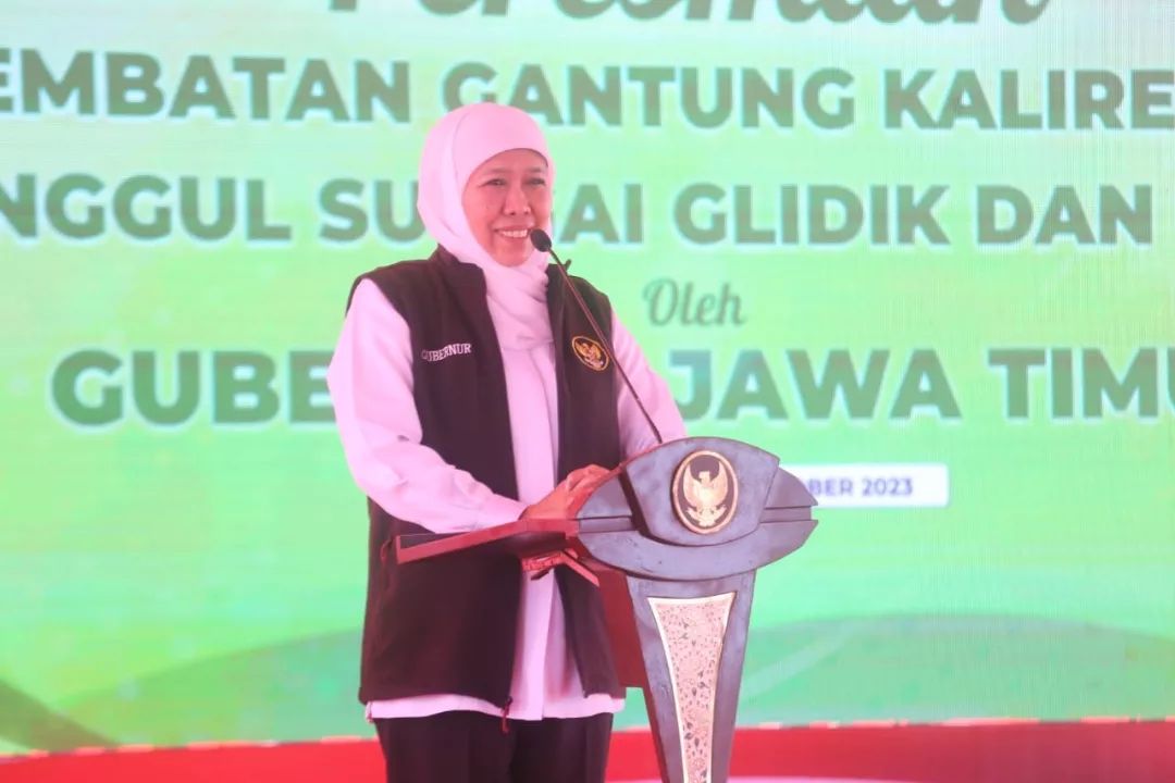 "Kami berharap semua yang kita lakukan menambah kemudahan masyarakat, meningkatkan akses masyarakat, Insya Allah membahagiakan masyarakat, mudah-mudahan Jawa Timur Allah anugrahkan keberkahan," ujar Gubernur Khofifah Indar Parawansa saat meresmikan Jembatan Kaliregoyo, Selasa (17/10/2023).