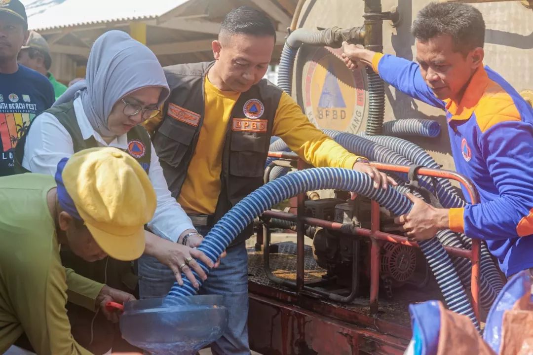 Untuk memenuhi kebutuhan air bersih, Pemerintah Kabupaten (Pemkab) Lumajang melakukan droping air bersih di tiga desa wilayah Kecamatan Gucialit, yaitu Desa Gucialit, Desa Wonokerto dan Desa Wonoayu, Jumat (27/10/2023).