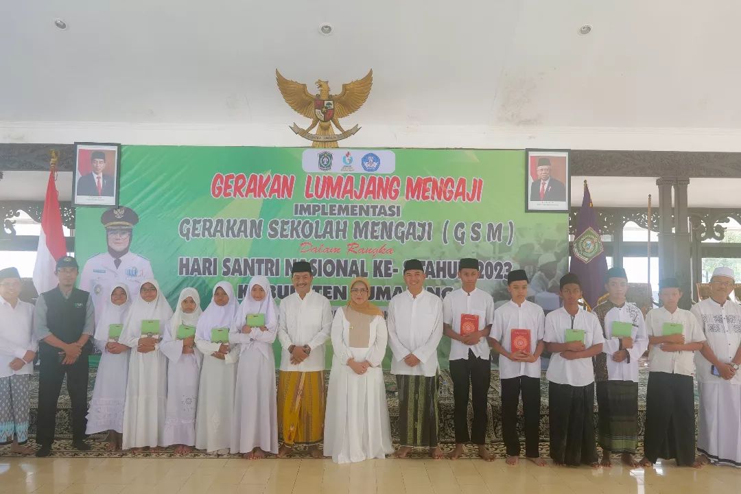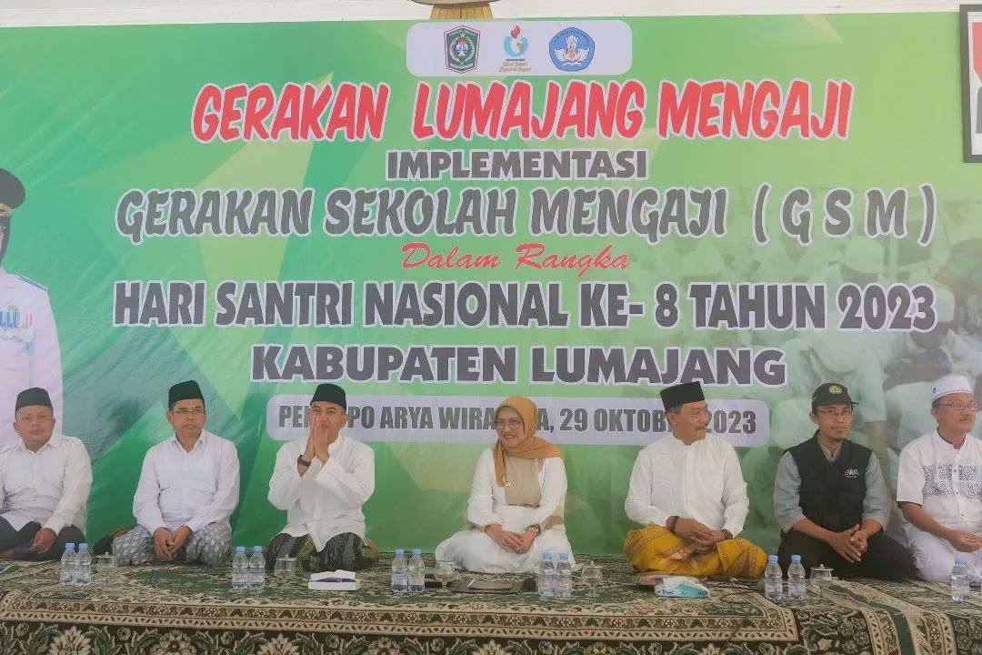 Sekitar 7.000 pelajar jenjang SD dan SMP di seluruh Kabupaten Lumajang, mengikuti Gerakan Lumajang Mengaji Dalam Rangka Memperingatan Hari Santri Nasional (HSN) 2023.