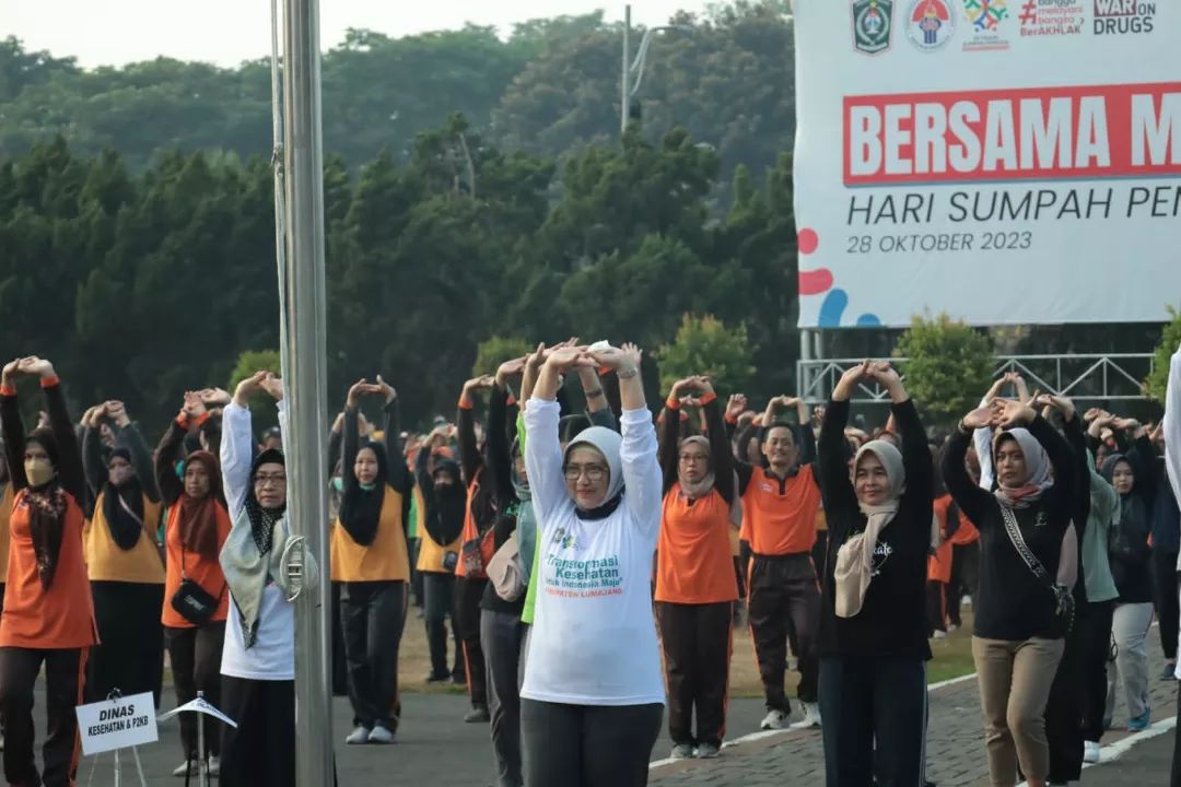 "Mari kita semua saling bergandeng tangan untuk mewujudkan transformasi kesehatan, serta siapkan dan sukseskan integrasi layanan primer di puskesmas, pustu dan posyandu, serta kunjungan rumah. Semoga tetap terjaga kesehatan kita menuju masyarakat Lumajang yang sehat," ujar dia dalam kegiatan Apel Kesegaran Jasmani dan Senam Bersama dalam rangka memperingati Hari Kesehatan Nasional (HKN) Ke - 59 Tahun 2023, bertempat di Alun-Alun Lumajang, Jumat (3/11/2023) pagi.