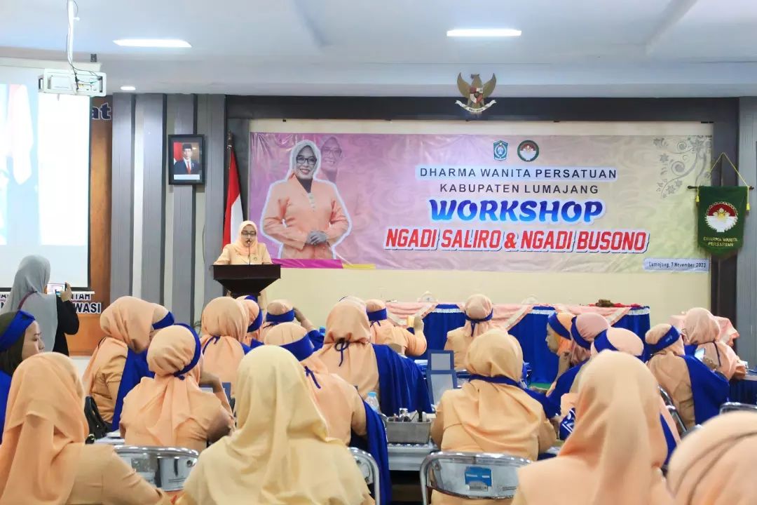 Menjelang pelaksanaan Lomba Ngadi Saliro dan Ngadi Busono pada 5 Desember 2023 nanti, Dharma Wanita Persatuan (DWP) Kabupaten Lumajang menyelenggarakan kegiatan Workshop Ngadi Saliro dan Ngadi Busono, bertempat di Graha Nagara Bhakti Kantor BKD Kabupaten Lumajang, Selasa (7/11/2023).