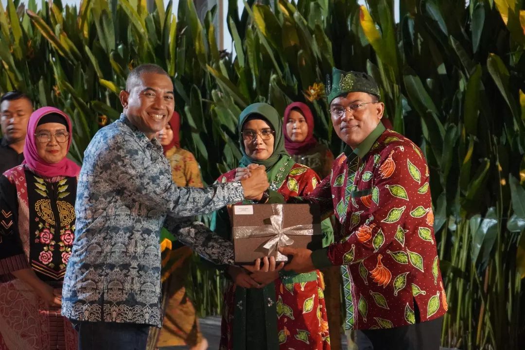Pj. Bupati Lumajang, Indah Wahyuni menghadiri acara pisah sambut Kepala Kejaksaan Negeri (Kajari) Lumajang yang lama Ristopo Sumedi kepada pejabat yang baru Safi Hadari, bertempat di Halaman Belakang Pendopo Arya Wiraraja Lumajang, Rabu (8/11/2023) malam.