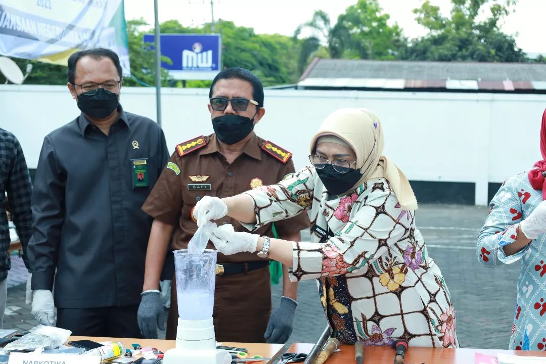 Forum Koordinasi Pimpinan Daerah (Forkopimda) Kabupaten Lumajang, Jawa Timur melakukan pemusnahan barang bukti perkara tindak pidana umum yang telah memperoleh kekuatan hukum tetap (Inkracht).