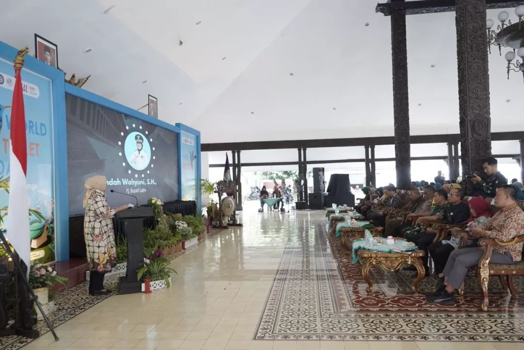 "Semua jajaran di Pemkab Lumajang akan siap membantu UNICEF dan Universitas Airlangga (UNAIR) bersinergi untuk meningkatkan sanitasi," ungkap Pj. Bupati Lumajang, Indah Wahyuni (Yuyun) dalam acara Perayaan Hari Toilet Sedunia, bertempat di Pendopo Arya Wiraraja Lumajang, Selasa (21/11/2023).