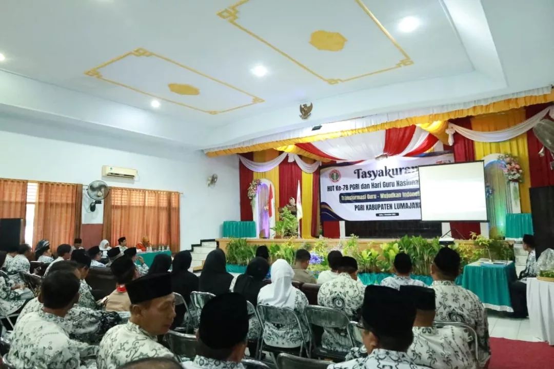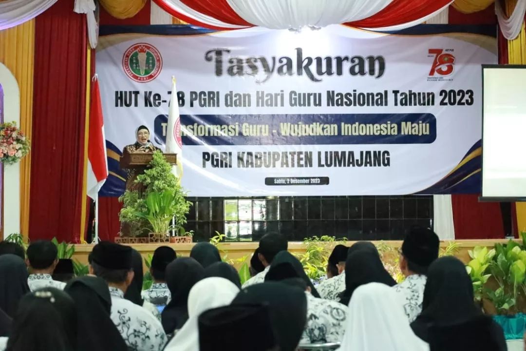Hal tersebut dikatakannya dalam acara Tasyakuran HUT ke-78 PGRI dan Hari Guru Nasional Tahun 2023, bertempat di Gedung Guru Lumajang, Sabtu, (2/12/2023).