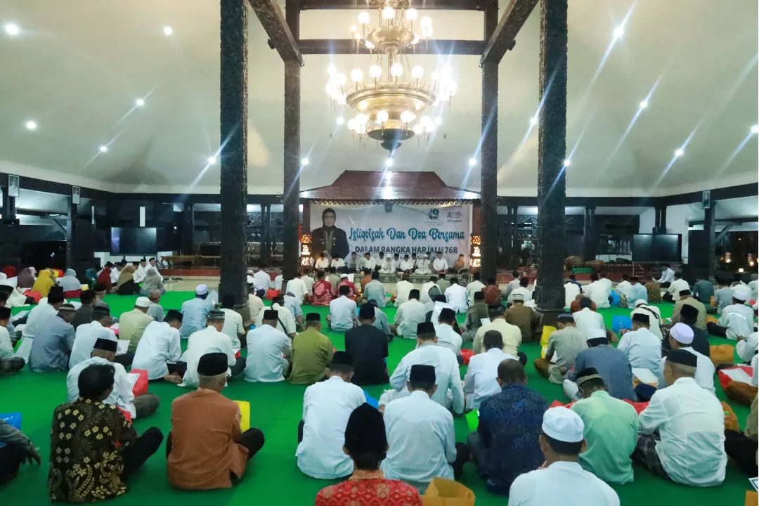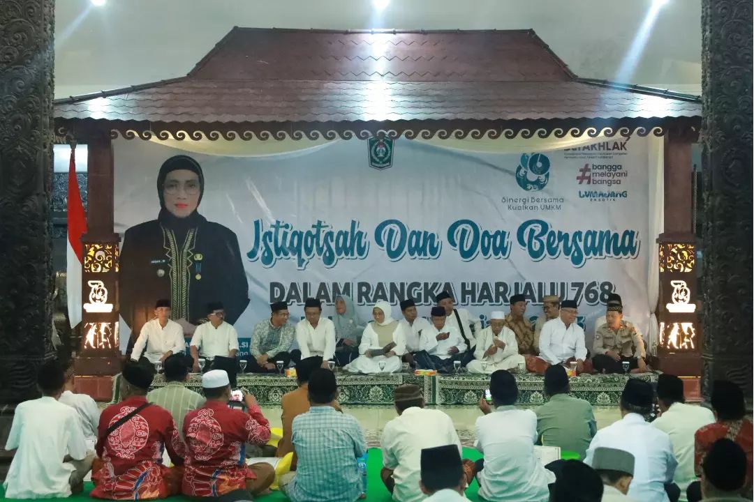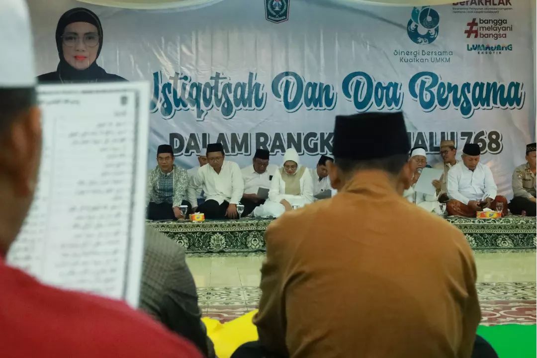 Malam ini, Selasa (14/12/2023), Pendopo Arya Wiraraja Lumajang menjadi saksi kebersamaan Pj. Bupati Lumajang, Indah Wahyuni (Yuyun) bersama jajaran Forkopimda Kabupaten Lumajang dan masyarakat dalam menggelar Istighosah dan Doa Bersama, sebagai upaya memperingati Hari Jadi Lumajang yang ke-768.