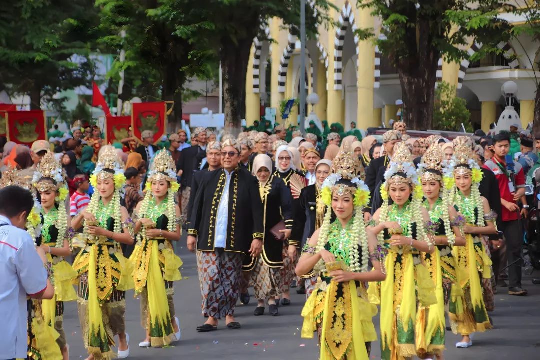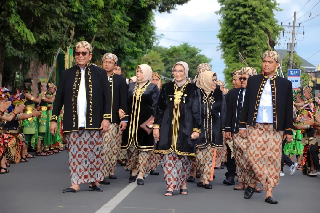 Rombongan Pj. Bupati Lumajang, Indah Wahyuni, beserta Forkopimda Kabupaten Lumajang memulai perjalanan mereka dari Pendopo Arya Wiraraja, menyusuri jalanan dengan arak-arakan penuh kegembiraan.