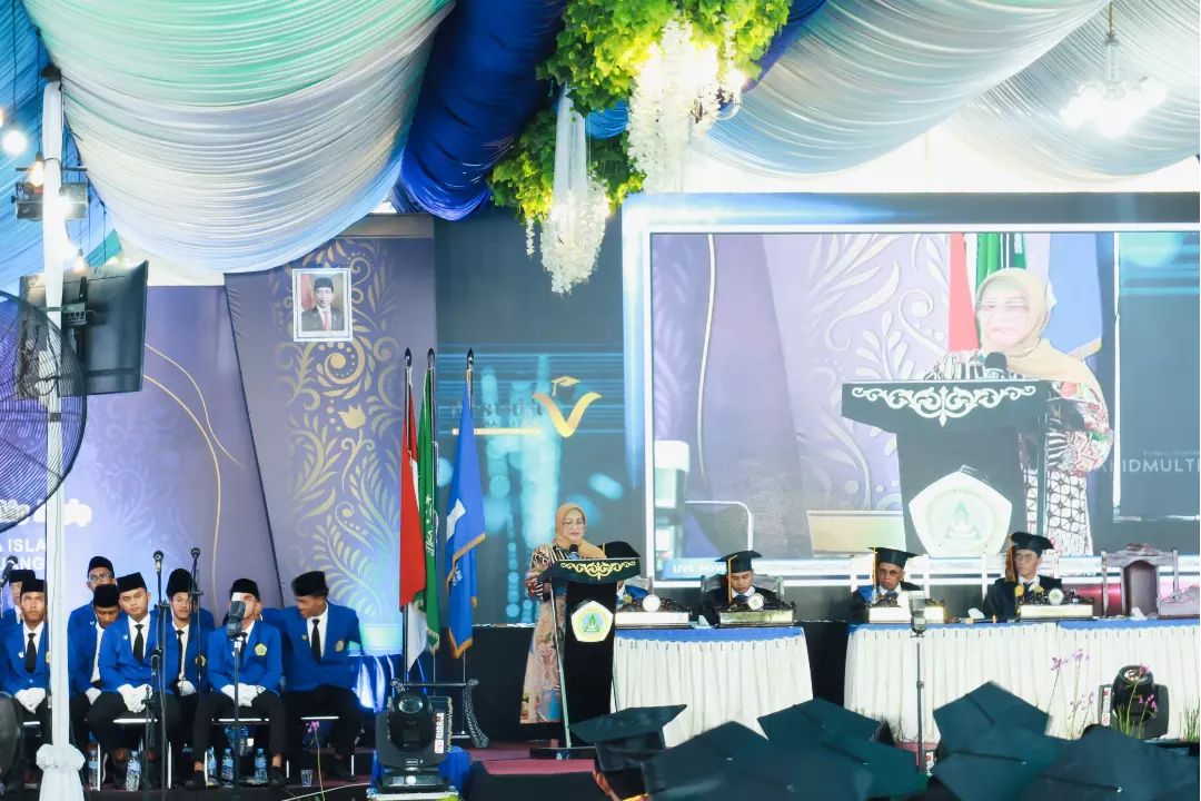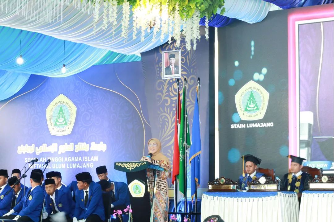 Pj. Bupati Lumajang, Indah Wahyuni (Yuyun) mendorong para wisudawan STAI Miftahul Ulum Lumajang untuk menjadikan gelar sarjana sebagai tanggung jawab untuk menginspirasi, memberikan kontribusi nyata, dan menjadi agen perubahan di tengah masyarakat.