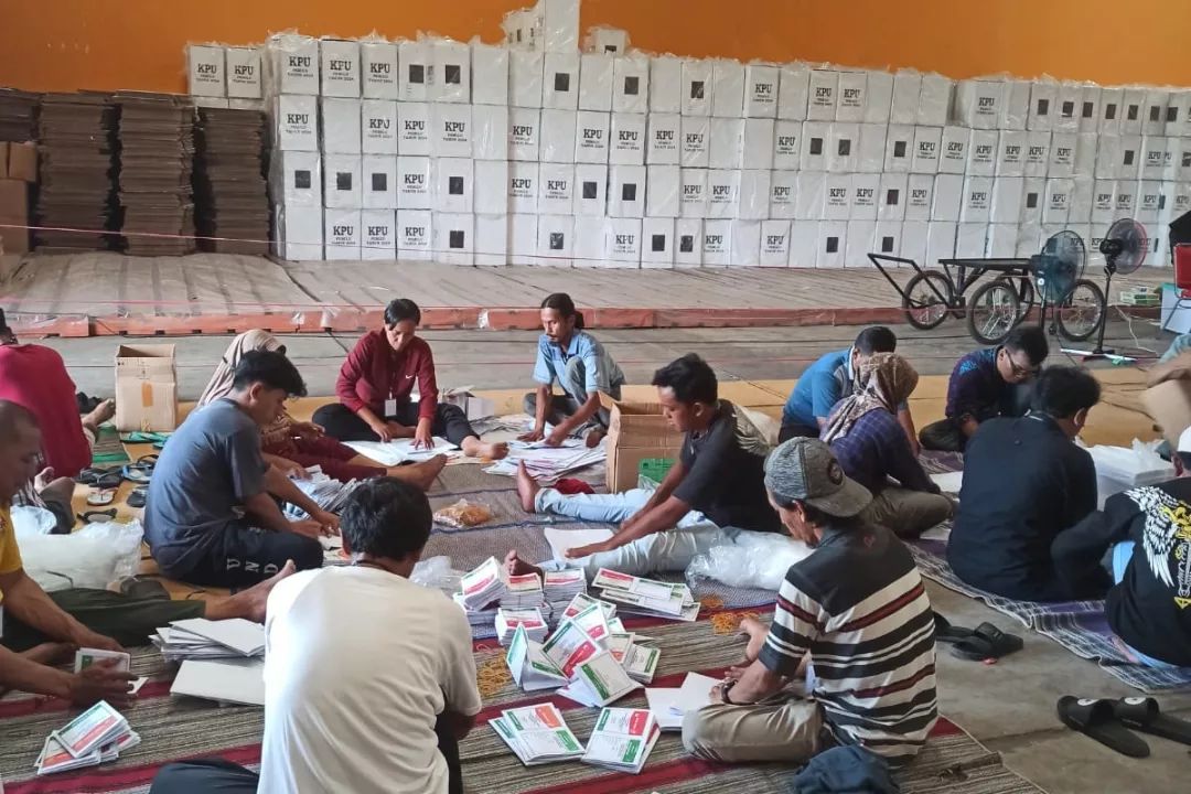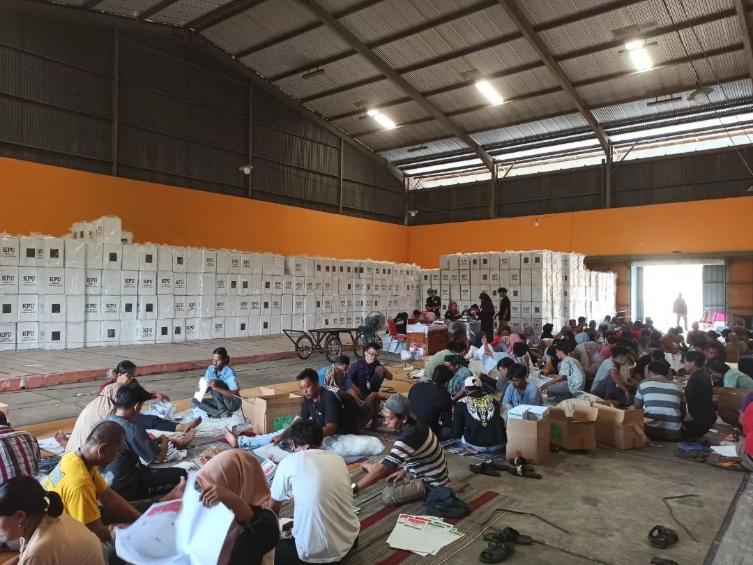 KPU Lumajang saat ini tengah melakukan sortir dan lipat surat suara di Gudang Bulog, Sumbersuko, Lumajang. Proses tersebut menjadi bagian krusial dalam memastikan kelancaran pesta demokrasi yang melibatkan partisipasi masyarakat yang tinggi. Logistik pemilu disiapkan dengan cermat untuk memastikan keberhasilan penyelenggaraan pemilu.
