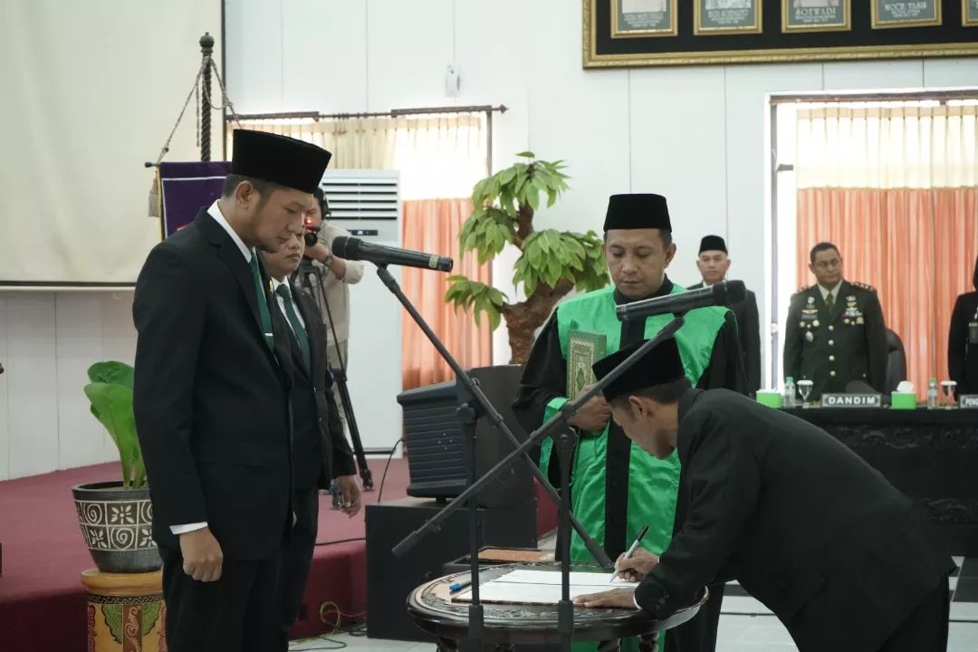 Pj. Bupati Lumajang, Indah Wahyuni turut menghadiri momen bersejarah dalam ranah politik lokal, yakni Pengucapan Sumpah/Janji Pengganti Antar Waktu (PAW) Anggota Dewan Perwakilan Rakyat Daerah (DPRD) Kabupaten Lumajang masa jabatan 2019-2024.