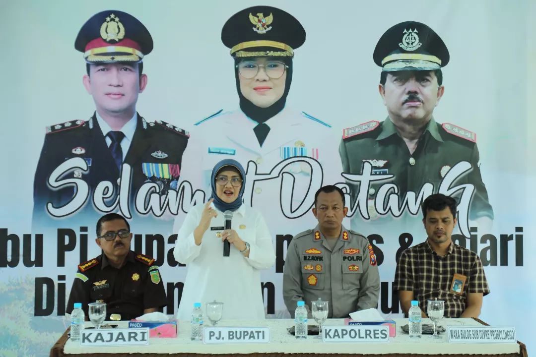 Pj. Bupati Lumajang, Indah Wahyuni bersama Kapolres Lumajang dan Kajari Lumajang melakukan kunjungan kerja ke wilayah Kecamatan Tempursari, Rabu (28/2/2024).