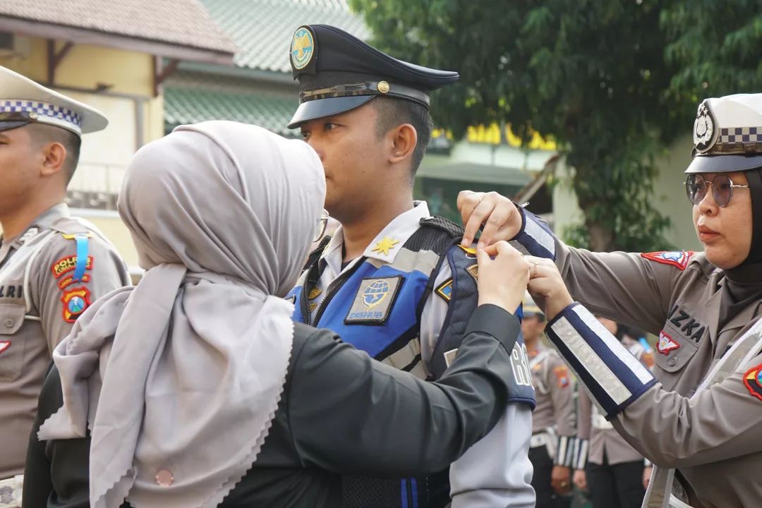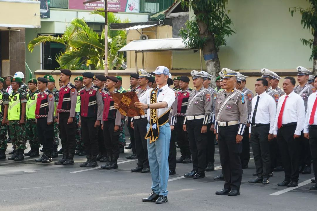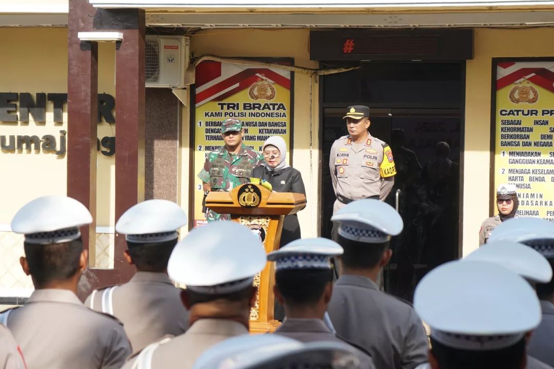 Pj. Bupati Lumajang, Indah Wahyuni (Yuyun) memimpin apel Operasi Keselamatan Semeru 2024 di Halaman Mapolres Lumajang, Sabtu (2/3/2024). Dalam kesempatan tersebut, ia menegaskan pentingnya menjaga ketertiban lalu lintas sebagai upaya mengurangi angka kecelakaan.